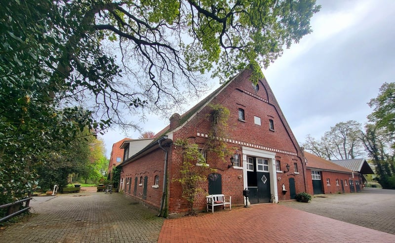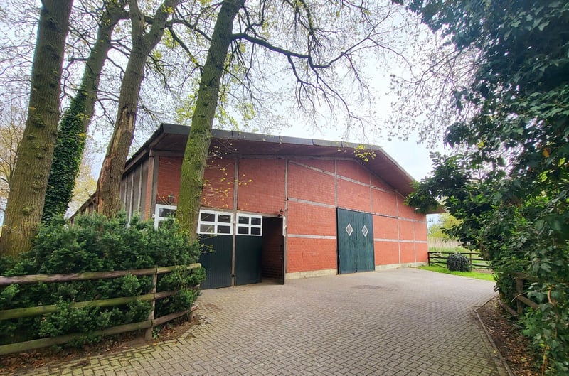 En la región de Emsland, cerca de la frontera con los Países Bajos, se pone a la venta esta magnífica instalación ecuestre. Aquí los datos principales: - Terreno propio de 7 hectáreas - Indoor de 42 x 19 m - Arena de doma 62 x 25 m, con base de esteras y mezcla de arena fina y corriente - Pista de manejo, 16 m para 6 caballos - Pista de trabajo en cuerda de 20 m - 51 boxes: 19 de 4,2 x 4,2 m, 10 de 3,6 x 3,3 m, 8 de 4 x 3,6 m, 2 de 5 x 3,5 m, 2 de 6 x 3,5 m, 2 de 3,9 x 3,5 m, 1 de 3 x 4 m y 7 de 3 x 3 m - 2 solárium, uno con secador - Aqua-Trainer - Nave de almacenamiento de 15 x 20 m - Nave de almacenamiento aislada de 15 x 30 m - Casa residencial de aproximadamente 500 m² - Aproximadamente 20 habitaciones, 4 baños, 6 aseos - Calefacción: petróleo y chimenea - Agua de red y pozo propio - Sistema de tratamiento de aguas residuales Hermoso estanque El inmueble no se encuentra en Haselünne. Actualmente no se dispone de certificado de eficiencia energética. Este se entregará a más tardar en la primera visita.