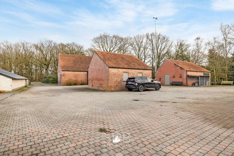 Diese ländlich gelegene Anwesen befindet sich in Turnhout, in der Provinz Antwerpen, auf circa 9,3 Hektar Land. Das großzügige Gehöft mit authentischen Stallgebäuden und Weideflächen entführt Sie in die Pracht und Schönheit der grünen Umgebung. Und denselben Charme spürt man auch im Inneren des Hauses. Der ländliche Wohnstil prägt das gesamte Anwesen und setzt schnell einen Trend. Dabei liegt der Fokus auf natürlichen Materialien und rustikalen Elementen. Das geräumige Wohnzimmer besticht durch sein Eichenbalken-Decken und den offenen Kamin, der für eine gemütliche Atmosphäre sorgt. Die großzügige Landhausküche hat ein zeitloses und einladendes Erscheinungsbild. Die Küche mit Kücheninsel ist mit allen notwendigen Geräten ausgestattet. Die großen Fenster sorgen für viel natürliches Tageslicht und schaffen eine enge Verbindung nach draußen. Angrenzend befindet sich ein Abstellraum mit Anschlüssen für Waschmaschine und Trockner sowie viel Stauraum. Im Erdgeschoss finden Sie ein vollwertiges Schlafzimmer mit Ankleidebereich. Ebenso gibt es ein modernes Badezimmer, ausgestattet mit einem Waschbecken, einer Badewanne, einer Dusche und einem WC. Im ersten Stock befinden sich zwei großzügige, frei gestaltbare Wohnräume. Diese können als Schlafzimmer genutzt werden, bieten aber auch die Möglichkeit, zusätzlichen Wohnraum oder Hobbyräume zu schaffen. Außerdem gibt es ein zweites modernes Badezimmer mit einem Waschbecken, Badewanne, Dusche und WC. Die Einbauschränke im oberen Stock sind perfekt auf den verfügbaren Raum abgestimmt und bieten zahlreiche praktische Staumöglichkeiten. Das Haus verfügt über eine Garage für zwei Fahrzeuge, mit angrenzendem Abstellraum. Außen befindet sich ein weiteres kleines Haus, eingerichtet mit einer gemütlichen Sitzecke und Essecke, einem Schlafzimmer sowie einem Badezimmer mit Waschbecken, Dusche und WC. Dieses Gästehaus bietet Möglichkeiten zur Vermietung oder dient als idealer Rückzugsort für Teenager im Haus oder als neue Man Cave, um dem Alltag zu entfliehen. Auf dem Grundstück befinden sich mehrere Nebengebäude. Das erste Nebengebäude umfasst 77,14 m² und bietet eine beeindruckende Lagerfläche. Aktuell dient es als Werkstatt und Pferdewagen-Depot, kann aber nach Wunsch umgestaltet werden. Das zweite Nebengebäude hat eine Fläche von 136,93 m² und bietet Raum in Volumen und Höhe, mit vielfältigen Nutzungsmöglichkeiten. Das dritte Nebengebäude umfasst beeindruckende 334,57 m². Es ist derzeit für die Tierhaltung ausgelegt, lässt aber nach Bedarf viel Freiraum für andere Nutzungen. Das vierte Gebäude misst 319,46 m² und ist derzeit eine offene Konstruktion, die je nach Aktivität flexibel genutzt werden kann. Dieses Anwesen besitzt ein unbezahlbares Volumen an bebauter Fläche – ein enormer Mehrwert für landwirtschaftliche Tätigkeiten oder Zuchtbetriebe. Entlang der Gebäude ist die Einfahrt mit Mosaikkieseln gepflastert, sodass keine Beeinträchtigung im Winter entsteht. Nach hinten hin eröffnet sich ein Blick ins Unendliche auf die angrenzenden Weiden. Verschiedene Wiesen sind in einzelne Parzellen unterteilt und eingezäunt, ideal, um Ihre Tiere oder Pferde täglich frei laufen zu lassen. Mit herrlichem Ausblick auf das umliegende Grün und dem Komfort der verschiedenen Nebengebäude fühlt man sich hier als Tierliebhaber voll und ganz zuhause. Aber auch Naturliebhaber werden diese Immobilie begeistern! Träumen Sie von einem wunderschönen Gehöft mit grünen Weitblicken, raschelnden Blättern im Hintergrund und einer natürlichen Lebensumgebung für Ihre Tiere und/oder Pferde? Zögern Sie nicht, uns zu kontaktieren.