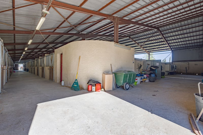 Découvrez cette structure équestre conçue en 2008 et implantée sur une parcelle de 2,5 hectares qui accueille : - Une écurie de 20 boxes 3x3.5m avec abreuvoirs automatiques, 2 selleries, un local technique, un bureau et un grand club house avec sanitaires PMR. - Un manège 40x20m, sol Vallabrix fibré, arrosage automatique et éclairage - Une carrière 40x80m, sol Vallabrix fibré, arrosage automatique - Un marcheur couvert 4 places - Une vingtaine de paddocks avec clôtures en bois, abreuvoirs automatiques et abris - Un hangar de stockage - Forage à 60m qui alimente toute la structure, rente annuelle pour location du toit pour le photovoltaïque Activité de transit de chevaux à reprendre. Les informations sur les risques auxquels ce bien est exposé sont disponibles sur le site Géorisques : https://www.georisques.gouv.fr/ Le bien est situé dans une zone soumise à l'obligation légale de débroussaillement (OLD). (*) Le prix indiqué comprend les honoraires à la charge du vendeur : 27 000 € TTC