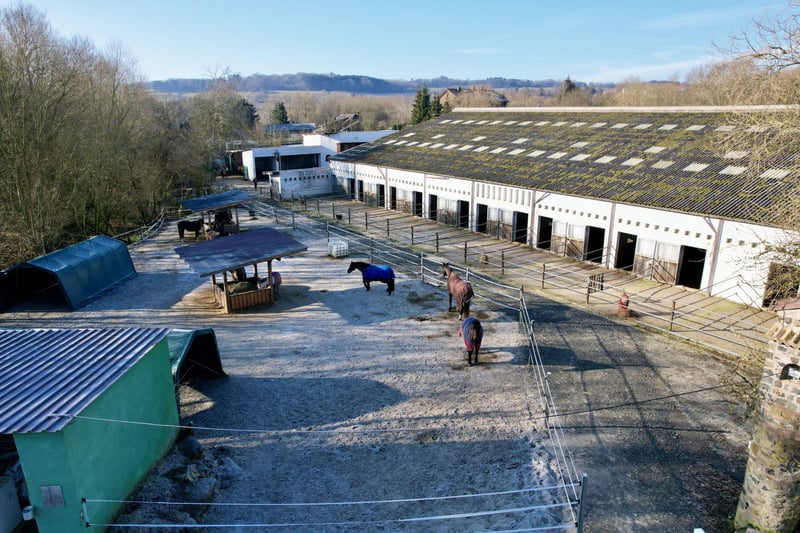 A paradise for horse lovers - your chance to own an exclusive riding facility! With a total area of approx. 12 hectares (and the option of further pasture land), this property offers everything that makes the heart of equestrian sports enthusiasts beat faster. Whether for ambitious horse owners, breeders or as a lucrative investment - you will find the perfect conditions here. The high-quality facilities, first-class infrastructure and idyllic location make this property unique. The modern indoor riding arena with a 20x40m riding area has a high-quality HEUS tarmac floor and riding arena mirrors from Equus Design, which can be optionally purchased by the club. There is a versatile storage area on the short rear side of the hall, which is also suitable for use as an open stable. Two spectator galleries also complete the overall picture. The large stable building is optimally divided. There are a total of 15 paddock boxes on the right-hand side, including 13 boxes measuring 3x4m with adjacent 3x6m paddocks, one paddock box with 4x4m and 4x6m paddocks and another with 5x4m and 5x6m paddocks. The left-hand side of the stable wing offers a comfortable grooming area with a height-adjustable solarium from Equus, direct access to the indoor riding arena, a tack room with 15 spacious army lockers and a feed room with three integrated silos in the ceiling, each holding 4-5 tons, an oat crusher and a feed trolley. There is also a further tack room with additional army lockers and five spacious indoor boxes, each measuring 3x4m, two of which have high-quality large hay racks. In front of the stables there is a covered grooming area and an outdoor grooming area with hosing down facilities. Below the stable there is a large outdoor paddock with two wooden hayracks and two pasture tents covering an area of around 700m². This was only newly built this year. The upper outdoor boxes on the opposite side of the stable comprise six spacious boxes, four of which are 3.5x3.5m each and two of which are 5x3.5m. A small tack room with water connection and a separate hay store provide additional storage space. There are also five outdoor paddocks, each with an area of around 300m² and wooden hay racks. There are two riding arenas for daily training: The upper riding arena measures approximately 25x50m and has a sand surface, while the lower riding arena measures approximately 25-35x55m and has a high-quality HEUS castle park sand surface. The lower arena has white fencing from Schmaus, a modern floodlight system and a practical "judges' hut" for storing obstacle material. The cozy riding room with approx. 50m² offers a direct view into the riding hall and is equipped with a projector, screen, a fixed bar counter with kitchen and an additional wood-burning stove. This was also used as a training room. Heated men's and women's toilets provide additional comfort. A further room next to the parlor serves as a storage area with army lockers and contains a washing machine, a gas boiler and a hot water tank. There is also a cistern of unknown size. An outdoor terrace completes the cozy lounge area. The two galleries of the indoor riding arena offer further possibilities for use: Gallery 1 houses a staff apartment with 45-50m² of living space, air conditioning from LG, gas heating and an Ikea kitchen, as well as an additional heated room with 24m². Gallery 2 serves as a further spectator area with storage space for lockers and equipment. The facility also includes two large warehouses that can be used in a variety of ways. The upper storage hall offers space for hay and straw and has a workshop in the upper area as well as additional parking and storage areas below. The lower warehouse can also be used for hay/straw storage or as an open stable. The riding facility has been regularly modernized and maintained. The most important investments include the new construction of the lower riding arena with drainage (2014), the renovation of the riding hall floor (2016), a new gas boiler (2018) and extensive renovations, including the riders' lounge (2020) and the staff apartment with installation of air conditioning (2023). In recent years, numerous fences have also been renewed, new wooden hay racks installed and modern lighting systems purchased. Although there is currently no residential building on the plot, we are convinced that all requirements could be met to obtain planning permission. Take advantage of this unique opportunity to realize your vision of a first-class equestrian facility! Contact us for more information or a personal viewing. Important facts at a glance: Plot size: approx. 12 hectares, optional further agricultural land of the owner for purchase or lease. Riding hall: 20x40m with HEUS quicksand floor, high-quality riding hall mirrors Stables: 15 spacious paddock boxes, 5 indoor boxes, 6 outdoor boxes, open stable options for additional horses Outdoor facilities: Two riding arenas (25x50m and 25-35x55m), large outdoor paddocks, Comfort & infrastructure: Riders' lounge with kitchen and projector, heated sanitary facilities, two galleries with staff accommodation Modern technology: floodlight system, height-adjustable solarium, integrated feed silos, oat crusher Storage areas: Two large storage sheds for hay, straw and workshop facilities Ongoing modernization: New indoor riding arena floor, improved fencing, new yard lighting, renovation of the riders' lounge and staff apartment, new outdoor paddocks LOCATION Elsoff (Westerwald) is a local community in the Westerwald district in Rhineland-Palatinate and is part of the Rennerod municipality. The community is located in a picturesque rural setting, surrounded by rolling hills, dense forests and wide meadows, making it an ideal place for nature lovers. Elsoff has good transport connections: Road access: The nearest major towns are Siegen, Montabaur and Limburg an der Lahn, each of which can be reached within half an hour by car. Highway connections: The p