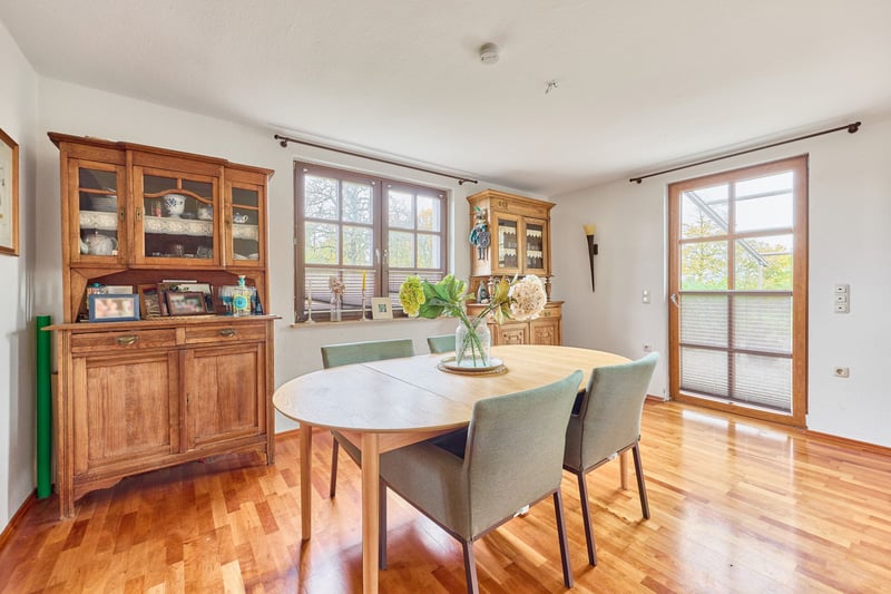 Equestrian Facility in Secluded Location with Space for Currently 32 Horses & Over 8 Hectares of Own Land! Property Description: This riding estate is situated in a quiet, private setting within a district of Birstein, combining functional infrastructure with a cozy, rural living atmosphere. The property spans approximately 83,879 m² of owned land, with an additional 17,500 m² of co-ownership and further leased areas. The country house offers about 350 m² of living space, divided into three residential units, including a small staff apartment. The two larger units can be combined into a single residence via an internal door but are also separable if desired. The building has been regularly modernized, with bathrooms and kitchens renovated in 2020. It is equipped with an air/water heat pump and an oil heating system, as well as underfloor heating and cozy tiled stoves. A large garden featuring a new outdoor pool adds to the exclusivity. The riding hall, built in 2004, provides an optimal training environment with a 20 x 40-meter riding arena and a sand/textile surface. Its timber-frame construction, large windows, and adjoining rider’s lounge create a bright, functional, and pleasant working atmosphere. Additionally, there is a large, drained grass riding arena, a lunging circle (Ø 18 m), and a horse-walking machine for four horses. The stables, constructed or renovated in 1970, 1990, and 2020, accommodate up to 32 horses, distributed across paddock boxes, indoor boxes, and open stalls. A large, fully enclosed barn from 1958 with 350 m² provides ample storage space for approximately 300 round bales. Extensive pastures and paddocks border directly to the stables, enabling species-appropriate keeping with plenty of movement. For daily operations, there is an approved manure platform, sufficient parking for cars, and a trailer parking area. The charm of the country house, generous grounds, and peaceful seclusion make this estate a place where one feels at home both in everyday life and in equestrian pursuits. Features: Main House: - Built: 1958, expanded in 1991 and 2004 - Living area: approx. 350 m², 3 residential units - Heating: Oil (2010), underfloor heating, tiled stove, air/water heat pump in the “Old House” - Construction: Solid masonry - Modernizations: Bathrooms and kitchens in 2020 - Windows: PVC/Wood, double-glazed, sash windows (from 1985, 1991, 2004) - Insulation: Roof and intermediate floors - Large private garden - Exterior pool (6.5 x 3.8 m) from 2021, heated via heat pump Riding Hall: - Built: 2004 - Arena: 20 x 40 meters - Surface: Sand/textile mixture - Construction: Timber-frame - Rider’s lounge with view into the arena Dressage Arena: - Built: 2005 - Dimensions: 70 x 110 meters - Surface: Drained grass - Fencing present Horse Accommodation: - Built: 1970, 1990, and 2020 - Watering: Frost-free ball troughs in the open stalls, Suevia circulation system in paddock boxes - Sizes: Between 3 x 3 and 3 x 4 meters - Multiple saddle rooms available Total capacity for up to 32 horses: - 10 Paddock boxes - 4 indoor boxes without paddock - 8 open stalls for 18 horses/ponies Horse-Walking Machine: - Capacity: 4 horses - Built: 2020 - Surface: Rubber bones Barn: - Built: 1958 - 350 m² gross floor area (fully enclosed) - Storage for approx. 300 round bales - Floor: Concrete Lunging Circle: - Built: 2010 - Surface: Sand/textile mixture, drained - Diameter: 18 meters - Fencing available Additional Features: - Approved manure platform - Trailer parking and car parking spaces - Approved application for a 24 kW photovoltaic system with the Kreiswerke MKK Location: The riding estate is located in a district of the municipality of Birstein in the Hessian Main-Kinzig district. Quick access via federal roads B276 and B457 leads toward Gedern, Gelnhausen, and Büdingen. From there, the A66 (Frankfurt–Fulda) and A45 (Hanau–Gießen) motorways are easily reachable. The Wächtersbach and Gelnhausen train stations connect to regional and long-distance services with direct links to Frankfurt am Main, Hanau, and Fulda. Frankfurt Airport (FRA) is approximately 60–70 minutes away by car, with Frankfurt-Hahn Airport reachable in about 90 minutes. The community offers a high quality of life in a natural setting. The district is part of the family-friendly municipality of Birstein, known for its active clubs, good basic services, and idyllic location within the Vogelsberg Nature Park. Numerous associations in the village and surrounding areas provide a diverse range of leisure and community activities—from riding and sports clubs to fire brigade and cultural initiatives. Daily necessities are available in Birstein and neighboring towns, including supermarkets, bakeries, butchers, banks, and restaurants. A larger retail and supermarket location is in nearby Wächtersbach, just a few minutes’ drive away. Educational facilities include a primary school and a comprehensive school with a gymnasium branch. Secondary and vocational schools are accessible in Wächtersbach, Gelnhausen, or Büdingen. Medical care is secured with general practitioners, dentists, and a pharmacy in Birstein, with specialists and Gelnhausen Hospital reachable within about 25 minutes. The combination of peaceful surroundings, a strong village community, and excellent connectivity makes this area an attractive place to live—ideal for families, nature lovers, and those seeking rural life with solid infrastructure. Energy Certificate: Main energy source: Heating oil, air/water heat pump Demand Certificate End energy consumption: 168.91 kWh/(m²*a) Energy efficiency class: F Construction year according to energy certificate: 1991 Additional Information: Unauthorized access to the riding estate outside of scheduled viewings with the authorized broker Fetter Immobilien is prohibited by the owners. A commission of 3.57% of the purchase price including VAT is payable upon notarization and is due upon signing the notariz