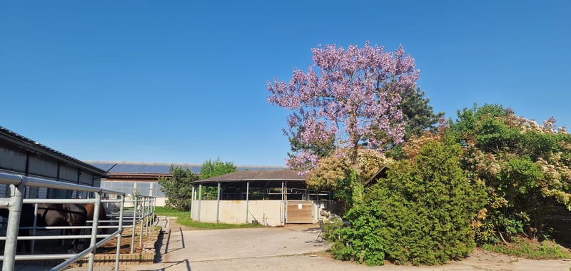 Professional equestrian facility for high-level sports in the Rhine-Neckar metropolitan region. The property is well-connected in the greater Mannheim, Worms, Speyer, Ludwigshafen area. The facility is well-maintained, fully utilized, and meets all equestrian requirements. The equestrian center is spaciously built and has excellent transport links. The facility is based on a very nice architectural concept. The specified location is not identical to the actual site to protect the identity. Area owned: approx. 4 ha Number of horses: approx. 45 horses Training facilities: – Riding arenas – Riding areas Types of accommodation: – Paddock boxes – Stalls Miscellaneous: Energy performance certificate is in preparation. The purchase price is plus 3.57% broker's commission including VAT. The inventory, machinery, and PV system are not included in the purchase price. The specified location is not identical to the actual site to protect the identity. We would be happy to provide you with detailed information. Please contact us. Thank you. Further pictures of this property and additional real estate offers can be found at www.wir-immobilien.com W.I.R. Immobilien - Your specialist real estate agent for equestrian facilities and agricultural properties.
