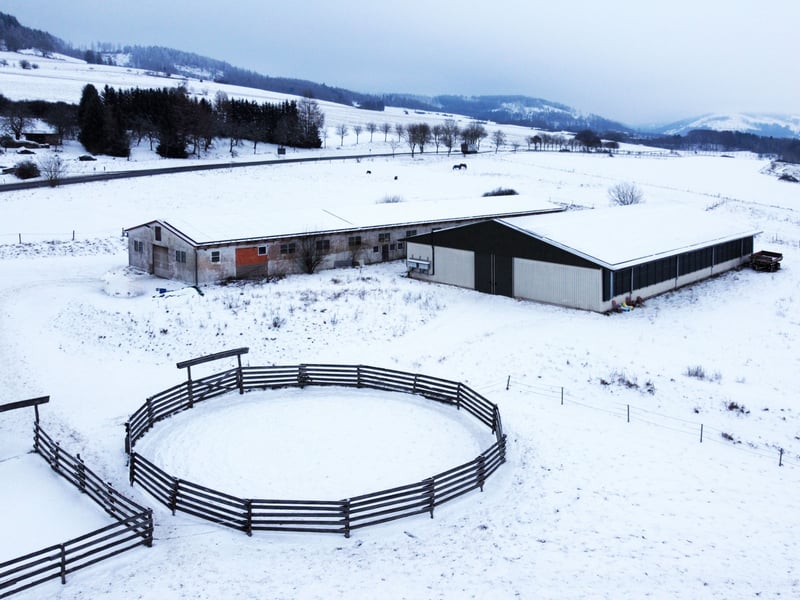 This lovingly developed riding facility offers horse enthusiasts a rare opportunity to realize their dream of living with horses in a peaceful natural setting—featuring functional infrastructure, ample space, and versatile usage options. Nestled in the gentle hills of South Thuringia, the property is quiet and directly integrated into the surrounding nature—ideal for those who wish to provide their horses with a species-appropriate environment and create a personal retreat in the countryside. The A73 motorway is only a 9-minute drive away, ensuring quick access from all over Thuringia and Franconia. The well-planned layout of the estate, short distances between the stable, indoor riding arena, and paddocks, as well as the adjoining pastures, enable smooth daily routines. Whether for private horse keeping, a small family-run boarding operation, or a combination of personal use and partial leasing—this property can be adapted flexibly to individual wishes.