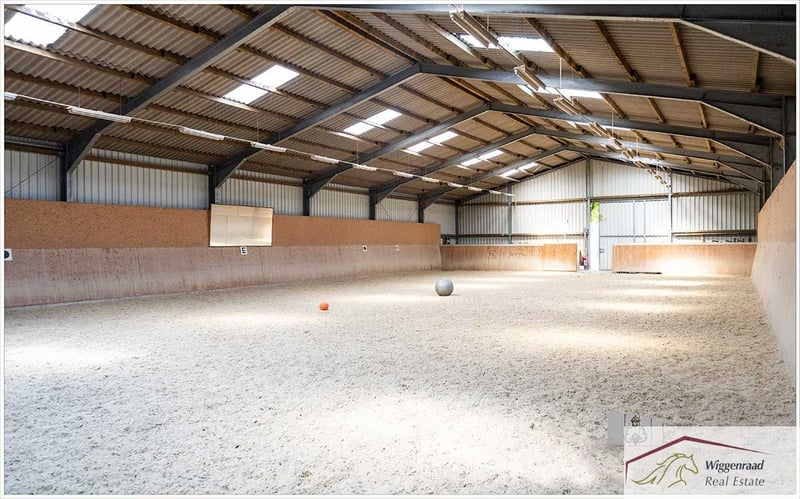 Ruiterfaciliteit voor de perfecte balans tussen gezinswoning en paardenpassie Het paardenpension, een ensemble van vier gebouwen, ligt vrij en volledig omgeven door groen op een perceel van circa 6,5 hectare tussen bos en weilanden. Het hoofdgebouw, ongeveer 520 m² groot, bevat vier zelfstandige wooneenheden met elk een eigen toegang. De ruime hoofdwoning van circa 344 m² beschikt over een gezellige open woonkeuken met kookeiland en voorraadkast in de entree. Een extra kamer, gecombineerd met een rolstoeltoegankelijke badkamer, dient als comfortabel gastenverblijf. Het hart van de begane grond is de lichte, ruime woonkamer met een zadeldak, grote raampartijen, terrasdeuren en een gezellige tegelkachel. Een klein kantoor is vanuit de woonkamer bereikbaar. Via een massiefhouten trap is de overdag verlichte galerie met bibliotheek te bereiken. Aangrenzend aan de woonkamer bevindt zich een grote hal die leidt naar twee lichte kinderkamers met volledige badkamer, een wasruimte en via een tweede trap het zadeldak-slaapkamer met badkamer en suite, dakbalken en uitzicht op de nok. De bovenverdieping herbergt tevens een medewerkerswoning van circa 70 m² met open zolderruimte en nog een ca. 100 m² grote woonunit. Alle woningen beschikken over een eigen ingang. Technisch gezien is het erf modern uitgerust met vloerverwarming, een BUS-systeem, traditionele ramen met moderne isolatie, een elektronische sluitinstallatie en een airconditioning in de hoofdslaapkamer. Eigen grondwaterwinning, een redundante oliecentrale, regenwaterafvoer voor de weilanden en een zonne-energiepotentieel zorgen voor toekomstbestendigheid en onafhankelijkheid. Voor een diervriendelijke en gepassioneerde paardenhouderij biedt de faciliteit uitstekende voorwaarden: acht boxen in de hoofdstal met zadelkamer, ruiterhokje, wasbox en hooinstallatie. Tien extra buitenboxen, inclusief een tweede zadelkamer, wachten op nieuwe dieren. Een lichte rijhal met verlichting, een grote paddock en meerdere weilanden met schaduwplekken en drinkbakken bieden optimale omstandigheden voor training en vrije beweging. Direct grenzend starten rijroutes door velden, bossen en weiden – een genot voor ruiter en paard het hele jaar door. Thuis zijn in je eigen leven, wie zou dat niet willen? Op deze unieke locatie wordt dit nieuwe geluk voor jou, je gezin en je paarden werkelijkheid, zonder grenzen. Indeling van de woning op Niederrhein Verdeling naar wooneenheden met woonoppervlakte (circa, in m²). Opmerking: de wooneenheden zijn flexibel samen te voegen of apart te gebruiken. Momenteel vormen wooneenheden 1 en 2 één geheel van circa 344 m²: woonkeuken, garderobe/entree, keuken, berging/voorraad, gastenverblijf, gang, badkamer, woonkamer met galerie/bibliotheek, kantoor, technische ruimte. Hal, 2 kinderkamers, wasruimte/techniek, badkamer, hoofdslaapkamer op de bovenverdieping, badkamer en suite, gang, inloopkast en bergruimte. Wooneenheid 3 – ca. 70 m² (medewerkers): wonen/eetkamer, keuken, garderobe, berging, gang, badkamer, slaapkamer, zolder (geen afbeelding). Wooneenheid 4 – ca. 100 m² (gasten/familie): hal/wonen/eetkamer, garderobe, badkamer, 2 slaapkamers, keuken, berging, zoldergalerie. Technische voorzieningen: vloerverwarming, moderne ramen/deuren in landhuisstijl, BUS-systeem, elektronisch slotensysteem, airconditioning in de hoofdslaapkamer, eigen grondwaterwinning, moderne oliekachel (dubbelbrand), regenwaterafvoer voor de weilanden, driekamersysteem. Faciliteiten van het paardenpension Hoofdstal met 8 paardenboxen, zadelkamer, ruiterhokje, badkamer met douche, wasbox en opslag voor voer en levering. Buitenboxen met 10 boxen, eigen zadelkamer en drinkbakverwarming. Lichtoverdekte rijhal (ca. 16,5 x 35 meter) met aansluitend hooi- en stroopslag. Grote rijbaan (ca. 60 x 30 meter), in de buitenruimte vijf weilanden met schaduwplekken en drinkbakken, regenwaterafvoer voor de terreinen. Twee aparte betonnen poetsplaatsen, fruitboomgaard met oude bomen. Directe aansluiting op rijroutes door het omliggende landschap in het natuurpark Hohe Mark. Bijzonderheden voor paardenhouderij: Verwarmde drinkbakken in de buitenboxen – betrouwbare watervoorziening ook in de winter. Eigen grondwaterwinning voor stal en terrein – onafhankelijke, kostenefficiënte voorziening. Regenwaterafvoersysteem voor directe watervoorziening van de weilanden. Directe toegang tot schilderachtige rijroutes in het natuurpark Hohe Mark. Privé locatie in idyllische omgeving aan de Niederrhein Het landgoed ligt afgelegen binnen de gemeente Hünxe aan de Niederrhein, in het Regierungsbezirk Düsseldorf. Het is omgeven door een landschap van gemengd bos, velden en weilanden. De locatie biedt directe toegang tot schilderachtige rijroutes in het natuurpark Hohe Mark. Hünxe ligt aan de westelijke rand van het Ruhrgebied en combineert het beste van twee werelden: een landelijke omgeving met directe aansluiting op het Ruhrgebied. De gemeente wordt beschouwd als een rustige, leefbare plek in de zogenaamde randstad – populair bij gezinnen, forenzen en iedereen die waarde hecht aan kwaliteit van leven. De omgeving rondom Hünxe heeft bovendien een hoog recreatief waarde: wandelingen langs het Wesel-Datteln-kanaal, door het Hünxer Bachtal of het Dämmerwald, evenals uitgebreide fietstochten – zonder stadsverkeer. Ook het recreatieaanbod is gevarieerd: een overdekt zwembad, meerdere tennisbanen en de golfclub Weselerwald met bijbehorende horeca liggen in de buurt. Een uitstekende wellnessfaciliteit, Livingroom SPA, bevindt zich in het nabijgelegen 4-sterren Landhotel Voshövel. De Gesamtschule Hünxe biedt moderne onderwijsconcepten in een levendige schoolgemeenschap. Kindergärten zijn eveneens goed bereikbaar. Wij presenteren deze woning in samenwerking met immobilienteam.de
