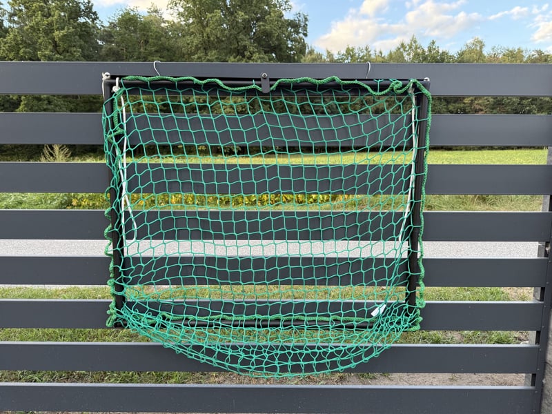 Pojemna siatka na siano na stalowej ramie. Ekspresowy montaż i łatwe ładowanie siana. Zmieści co najmniej jedną, dużą kostkę siana. Standardowe wymiary: 110x90 cm (możliwość dopasowania wymiaru do potrzeb Klienta). Oczko siatki: 4,5cm lub 2,5cm Oferujemy wiele innych akcesoriów stajennych. Zapraszamy do koń
