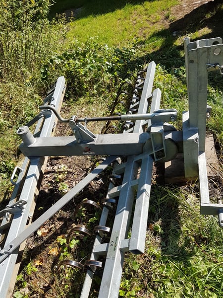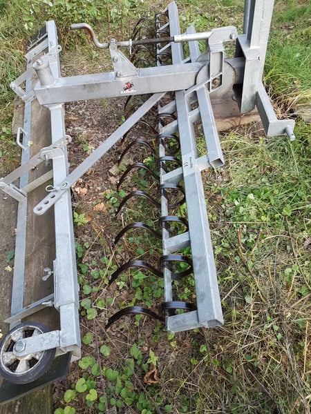 Sehr solides Gerät. Feuerverzinkt, gepflegt. Für Schlepper ab 30 PS. Mit Bandenrollrad,auswechselbaren Scharen und Federzinken. Holzbohle auswechselbar. Stufenlos höhenverstellbar. Arbeitsbreite 275 cm. Kam wenig zum Einsatz. Wegen Aufgabe des Reitsports, von Privat. Der Preis ist verhandelbar