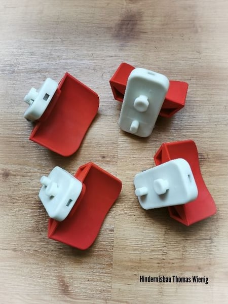 Stangenauflagen aus Kunststoff Preis je Stück 3,10 Euro ab 20 Stück 3,05 €/Stück ab 50 Stück 3,00 €/Stück ab 100 Stück 2,95 €/Stück + Versand von 5,99 € universell für alle gängigen 24 mm Schlüssellochsysteme einsetzbar farbe weiß Auflagentiefe 20mm runde Auflagenfläche für Stangen, flache Seite für Planken, Gatter etc. Preis je Auflage Folgende Artikel finden sie ebenfalls bei meinen EBAY-Kleinanzeigen-Auktionen - Stangenendkappen - Schlüssellochschienen 75 cm - Schlüssellochschienen 50 cm - Schlüssellochschiene Metall 150 cm - Fähnchen incl. Halter - Hindernisstangen - Sicherheitsauflagen - Hindernisse
