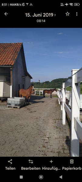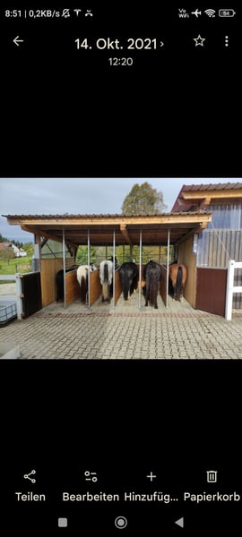 In unserem Privatstall sind Boxen frei geworden. Jede Box führt in ein gemeinsames, befestigtes Paddock mit Unterständen, Sandauslauf und auch direkt zu den Koppeln. Die Weide wird in der Saison täglich portioniert, sodass die Pferde sich viel bewegen können, aber keine Rehegefahr besteht. Heu gibt es in dieser Zeit morgens und abends, damit der Rauhfutterbedarf abgedeckt ist. Im Winter wird mindestens 5 x Heu gefüttert, über die Nacht mit Heunetz in der Box. Beleuchteter Sand-Reitplatz mit Vlies/ Engelshaar 25x40m, Toilette, Reiterstübchen, Heizraum und Sattelkammer vorhanden. Mithilfe ist erwünscht und individuell absprechbar. Gerne auch Vollpension. Bei Fragen gerne melden.