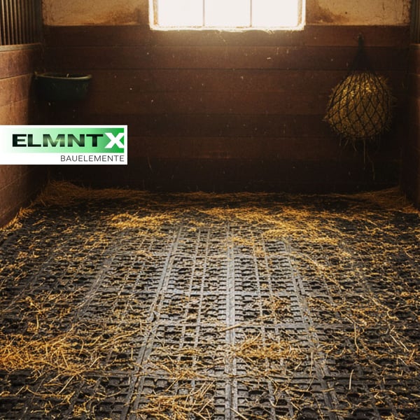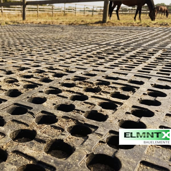 Professionelle Matte für den Reitplatzbau und Liegebereiche. Sie trennt den Unterbau sauber von der Tretschicht, damit kein teurer Sand im Boden verschwindet. Die Unterseite hat Kanäle, die Wasser horizontal ableiten. Die Oberseite mit Noppen bietet Halt. Wirkt stoßdämpfend und wärmeisolierend im Stallbereich. Technische Daten: Maße: 125 cm x 80 cm Deckfläche: 1 qm Stärke: ca. 40 mm Gewicht: ca. 18,5 kg Profil: Noppen oben / Drainage unten Maße: 50 cm x 50 cm Stärke: 55 mm (Extra stark) Gewicht: ca. 6,5 kg PREISSTAFFELUNG 125cm x 80cm (inkl. 19% MwSt.) Ab 30 Stück: 30,90 € / Stk. 21 – 29 Stück: 31,90 € / Stk. 11 – 20 Stück: 32,90 € / Stk. 01 – 10 Stück: 34,90 € / Stk. PREISSTAFFELUNG 50 cm x 50 cm (inkl. 19% MwSt.) Ab 90 Stück: 15,90 € / Stk. Ab 50 Stück: 16,90 € / Stk. 21 – 49 Stück: 17,90 € / Stk. 01 – 20 Stück: 18,90 € / Stk. VERSAND & ABHOLUNG Spedition: Deutschlandweiter Versand. Die Entladung erfolgt bequem per LKW-Hebebühne (kein Stapler nötig). Abholung: Nach Terminvereinbarung in 47589 Uedem möglich. Sie haben Fragen oder benötigen ein individuelles Angebot? Kontaktieren Sie uns gerne direkt hier per Nachricht oder telefonisch. ELMNTX Bauelemente Inh. Michal Papala 📞 Tel / WhatsApp: 0170 889 1058 ✉️ Oder Nachricht schreiben ## Rechtstext / Impressum ELMNTX Inhaber: Michal Papala Matthiasstr. 40 50354 Hürth Deutschland Telefon: +49 (0) 170 889 1058 E-Mail: info@elmntx.de Umsatzsteuer-ID: DE454182414 Online-Streitbeilegung (OS): Die Europäische Kommission stellt eine Plattform zur Online-Streitbeilegung bereit, die Sie hier finden: https://consumer-redress.ec.europa.eu