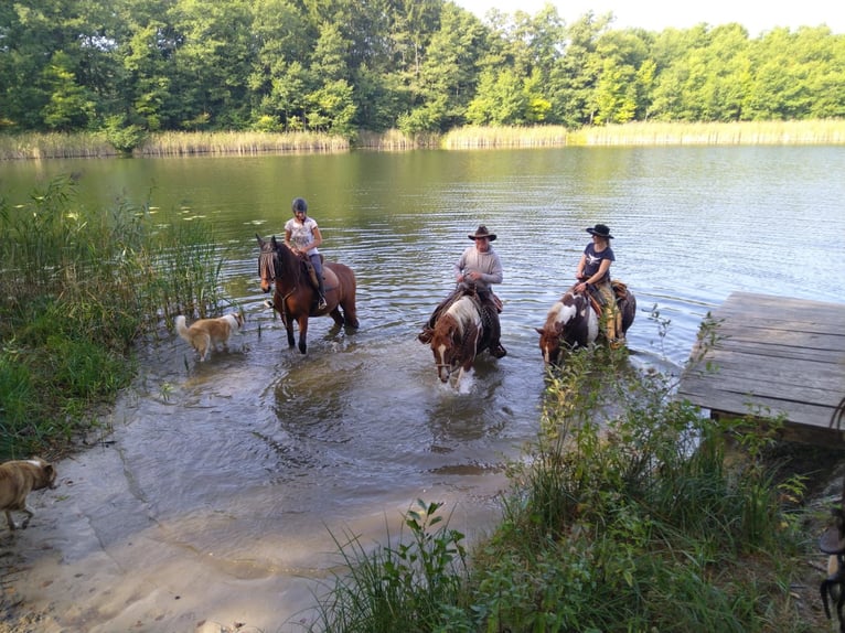 Geniet van mooie dagen met uw paard op onze kleine paardenboerderij "Polana Harmonii", aan de rand van de "Puszcza Notecka" in Polen. Onze "Polana Harmonii" ligt ongeveer 100 km achter Frankfurt/Oder, richting Poznań. De Puszcza Notecka is een groot bosgebied met veel meren. Honden en andere huisdieren zijn ook welkom. Op onze open plek leven we met 3 paarden, 2 honden, een kater en enkele kippen. Ons domein ligt midden in het bos. U kunt daar in de vrije natuur, ver weg van de drukte en stress van het dagelijks leven, een mooie tijd doorbrengen met uw paard. In de aangrenzende, eindeloze bossen kunt u ontspannen rijden. Onze paarden leven in een open stal met vrije toegang tot de wei. Daarnaast voeren we hooi bij. Wij bieden: Een vrijstaand vakantiehuis, woonoppervlak ca. 48 m² met plaats voor maximaal 4 personen. In het huis zijn er 2 slaapkamers, een badkamer met douche en wc, een woonkamer met eetgedeelte en een goed uitgeruste kitchenette met oven. Een wasmachine is ook aanwezig. Bedlinnen en handdoeken/zwemhanddoeken worden uiteraard verstrekt. Geniet van uw maaltijden op het terras dat direct aan de rand van het bos ligt. Het terrein van het gastenhuis is omheind, uw honden kunnen daar dus ongestoord vrij rondlopen. Minimale verblijfsduur 2 nachten, prijs per nacht € 85,00, voor het huis plus € 10,00 per paard. Wij spreken Duits en Pools. Vragen graag aan Anna Ruszkowska of Ulrich Keßelheim, Stryszewo 1A, 66-340 Przytoczna/POLEN. Tel. +49 176 412 99 402 of +48 602 120 115, ook via WhatsApp.