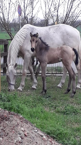 Mila wordt nu al 8 maanden oud en zoekt haar nieuwe eigenaar. Dit mooie buckskin merrie straalt harmonie uit en heeft een levendig, nieuwsgierig karakter. Ze beheerst de basis van de veulenschool. Ze is gepresenteerd op de veulenschouw en heeft de veulenpremie ontvangen. Ze krijgt papier voor het Kleine Duitse Rijpaard. Eindmaat ca. 1,60 m Momenteel ca. 1,36 m groot Gezien haar ouders wordt Mila een zeer veelzijdige jonge dame, die ingezet kan worden in dressuur, springen en buitenritten. Beide ouders zijn probleemloos gestart met rijden, goed berijdbaar en behaalden hoge klasseringen bij vrijspringwedstrijden. Mila wordt regelmatig door de hoefsmid verzorgd, ontwormd en krijgt een tetanusvaccin. Een bezichtiging is op afspraak op elk moment mogelijk. Locatie: 39164 Wanzleben-Börde Het meenemen van de veulens tegen meerprijs is geen probleem. Of blijven in de opfok tegen meerprijs. In termijnen betalen is ook mogelijk. Het veulen blijft dan wel bij ons op de boerderij tot volledige betaling is voldaan.
