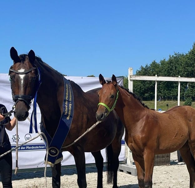 FInchen es una potra simpática y noble del semental Für immer Du, que es S exitoso hasta St. En el campeonato de potros de élite de Mecklemburgo, esta inteligente potra conquistó al jurado. Con 82 puntos (9,5 por raza y tipo de sexo), Finchen ganó el concurso en la clase Dt.R.