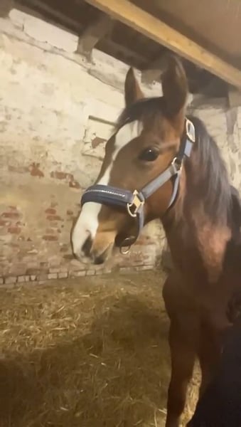 Nach langer Überlegung haben wir uns doch dazu entschieden unseren super hübschen ( Braun mit 4 weißen Füßen und toller Blesse ) und vielversprechenden Mighty Moonlight zu verkaufen . Geplant war ihn als Hengstanwärter zu behalten , da er schon jetzt von der Bewegung , als auch vom Exterieur wirklich vielversprechend und ansprechend ist . Da ich nun leider seit dem letzem Jahr gesundheitlich sehr eingeschränkt bin , kann ich mit ihm weder jetzt noch in Naher Zukunft so mit ihm altersgemäß arbeiten , wie es eigentlich mein Anspruch ist . Er geht brav am Halfter und ist ein wirklich lieber , junger Mann. Er wird im Mai 1 Jahr alt . Durch die Kombination seiner Vollblutmutter Manaia und seinem tollen Vater Mighty Pleasure wird er sicherlich in den verschiedensten sportlichen Riegen einsetzbar werden . Er bekam 2025 eine Fohlenprämie , da er sich sehr gut präsentieren konnte . Aktuelle Bilder folgen , die obigen sind meist vom letztem Jahr . Wer ein überzeugendes Nachwuchspferd für den Sport sucht , sollte sich unseren Minni Manni ( so nennen wir ihn ) unbedingt anschauen . Er ist als kleines deutsches Reitpferd bei dem Zfdp eingetragen . Seine Mutter ist 1.61 groß und sein Vater 1.55 . Somit kann er einiges an Reitern abdecken . Er hat natürlich volles Papier . Es ist kein Notverkauf und er soll auch nur in wirklich interessierte Hände . Keine Händler ! Er geht nur , wenn wirklich für mich alles paßt . Verhandlungen bitte nur vor Ort und auch nur im angemessenen Rahmen .