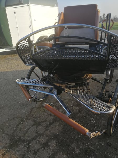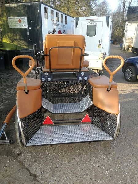 Hat lange Zeit in der Garage gestanden. Edelstahl, Deichselbremse, Lenkverzögerung, Aufblasbare Luftfederung hinten. klappbarer Kutschbock um die Kutsche auch von hinten zu besteigen.
