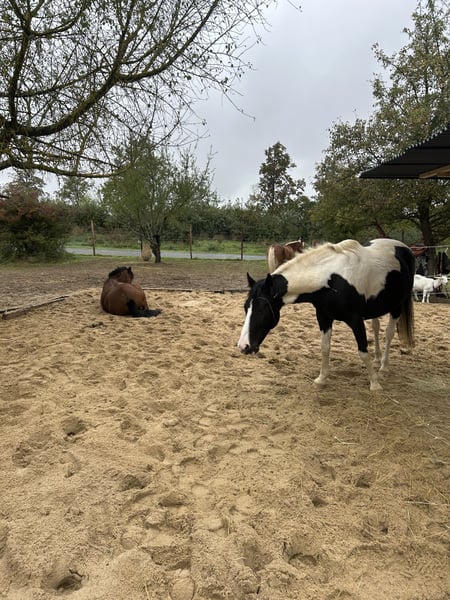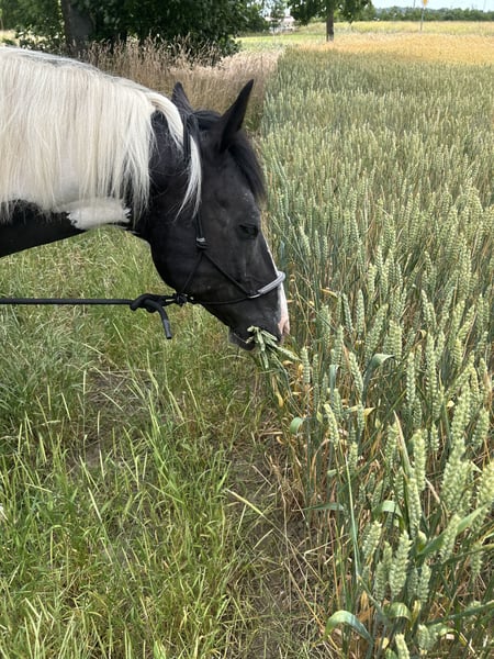 Name: Robin Hood Rasse: Mecklenburger Pinto Geschlecht: Wallach Geburtsjahr: Mai 2016 (10 Jahre) Stockmaß: ca. 1,52 m Farbe: schwarz-weiß gescheckt Beschreibung: Robin Hood ist ein absolut ehrlicher, fein reagierender und menschenbezogener Freizeitpartner, der durch seine Vielseitigkeit und sein großes Vertrauen zum Menschen überzeugt. Er ist englisch ausgebildet, wurde zuletzt jedoch western geritten und kennt somit beide Reitweisen. Robin hat freigeritten viel Go und eignet sich gut für fortgeschrittene Reiter – An der Longe und bei der Bodenarbeit macht er einfach Spaß , da er immer aufmerksam ist und sehr fein reagiert. Gleichzeitig wurde er bei seiner Vorbesitzerin regelmäßig fürs Kinderreiten eingesetzt: geführt mit Kindern ist er tiefenentspannt, egal ob mit Sattel, Voltigurt oder sogar nur mit Pad. Charakter & Umgang: Robin ist ein Pferd, das mitdenkt und vertraut. Selbst in neuen oder ungewohnten Situationen bleibt er stehen, schaut sich alles an und rennt weder los noch erschrickt er panisch. Ein schönes Beispiel: Beim Hufbearbeiten mit der Flex war er anfangs skeptisch, blieb aber ruhig stehen, ließ alles zu und vertraute seinem Menschen – genau das zeichnet ihn aus. Er reagiert sehr fein auf Stimme, sowohl bei der Bodenarbeit als auch auf der Koppel. Ein klares „Nein“ reicht oft schon, und er hört sofort auf. Die Bodenarbeit mit ihm macht besonders viel Freude, da er aufmerksam, kooperativ und lernwillig ist. Haltung & Gesundheit: • Kennt Offenstall- sowie Boxenhaltung • Ankaufsuntersuchung 2025 ohne Befund liegt vor • Hufbearbeitung macht er brav mit Flex • Verladefromm Sonstiges: Robin bringt auf Wunsch sein Putzzeug sowie Decken, Halfter und einiges anderes Zubehör mit. Fazit: Robin Hood ist kein reines Anfängerpferd, aber ein absoluter Kumpel mit viel Herz, Verstand und Arbeitsfreude. Wer sich Zeit nimmt und eine ehrliche Beziehung aufbaut, bekommt hier wirklich einen Kumpel fürs Leben. Ein Probereiten ist wettersbhänig möglich, auch wenn Robin auf Grund privater Umstände nicht perfekt im Training steht. Wir haben allerdings keine Reithalle ;) 📍 Platz vor Preis 📩 Bei ernsthaftem Interesse freue ich mich über eine Nachricht mit persönlicher Vorstellung.