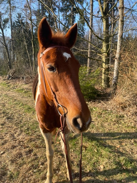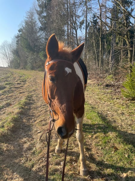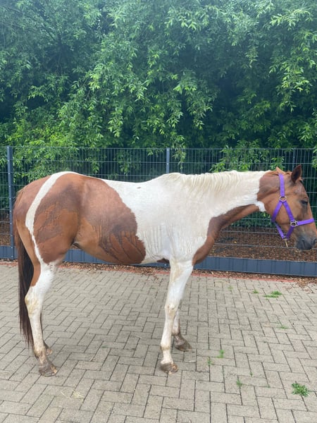 Wundervolle Gangpferd Stute sucht ein Zuhause bei Gangpferdliebhabern Sie steht in 49497 und ist aktuell im direkten Umkreis in Beritt Unsere liebevolle und sensible Stute ist 10 Jahre alt. Geschätzt hat sie ein Stockmaß von ca 1,49m. Sie ist absolut lieb und brav im Umgang. Alles was ein Pferd kennen sollte, ist ihr bekannt, egal ob Autos, Traktoren, Kinder, Hunde. Auch Schuss- & Knallsicher ist sie. Beim Schmied ist sie absolut entspannt und auch Hänger fahren meistert sie bestens. Bei uns lebt sie im Offenstall, ist aber aktuell in Profi- Beritt, wo sie nachts in einer Box steht, die sie sehr wertschätzt. Deshalb wünschen wir uns einen Platz, wo sie nachts in eine Box kann und tagsüber draußen ist. Sie ist gut sozialisiert und kommt mit anderen Pferden gut klar. Auch Shettys gehören zu ihrer Herde. Am liebsten geht sie ins Gelände (in Begleitung anderer Pferde), lernt aber auch gerade eine vernünftige Platzarbeit im Beritt kennen. Bei Spaziergängen ist sie völlig tiefenentspannt und begleitet ihren Menschen überall hin, auch ohne andere Pferde. Früher wurde sie viel von Kindern geritten. Bei der Bodenarbeit zeigt sie sich freudig an kleinen Lektionen. Grundsätzlich ist sie ein sehr sensibles Pferd, wenn man aber ihr Vertrauen hat, ist sie für jeden Spaß zu haben. Wir sind auf der Suche nach einem Zuhause bei Gangpferdliebhabern, die ihre besondere Art Wertschätzen und weiter fördern. Sie läuft einen klaren Pass und schönen Tölt. Ein richtiger Trab unterm Sattel fällt ihr noch schwer. Meldet euch gerne bei Fragen oder Interesse bei mir. Videos auf Anfrage.