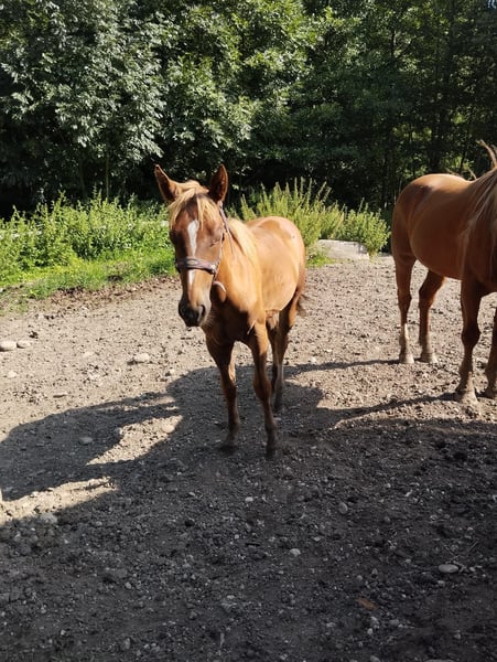 Verkaufe 1jährige Mix Stute, kurz gebaut, Fuchs farben