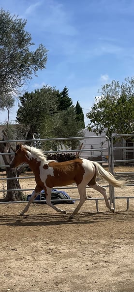 Bell puledra con pedigree italiano. Mamma Mimma (Reining / Barrel) Papà Gallo Bueno (Quarter Americano) La puledra vive con noi in un branco misto, stando fuori tutto l'anno, e viene portata in box con paddock solo di notte. È abituata all'ABC, maneggevole con il cavallo a capo, conosce il ferratura, i bambini, i cani, i gatti e le galline. È molto desiderosa di imparare, sveglia, con un buon desiderio di movimento e un trotto fantastico. Addestrata secondo il metodo Parelli, si fa portare in trailer/contenerne, va a passeggio da sola o in gruppo… investiamo molto tempo e amore nell’educazione dei nostri cavalli.