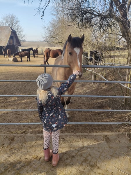 Diese wunderschöne und extrem gelehrige Falbscheckstute sucht ihr perfektes Zuhause. Sie ist korrekt gebaut, robust aufgezogen, sehr gut bemuskelt, alle 8 Wochen bei der Hufpflege, kennt Longieren, Spazieren gehen, Arbeit am Kappzaum, fährt brav Hänger und kennt erste Lektionen vom Boden wie hinlegen, Konterschulterherein und Schenkelweichen. An den Sattel haben wir sie bereits gewöhnt. In der Herde zeigt sie sich unkompliziert. Ihre Farbe macht sie zu einem ganz besonderen Hingucker. Gezogen wurde sie im Gestüt Zollmann, ihr Vater ist der homozygote Grullo-Paint- Hengst "Pepsi" und die Mama ein Reitpony. Ab März ist sie bereit, schonend angeritten zu werden. Dies kann auf Wunsch noch bei uns am Hof erfolgen. Mehr Videos und Fotos gerne auf Anfrage.