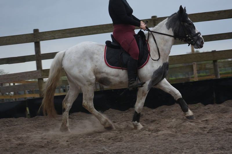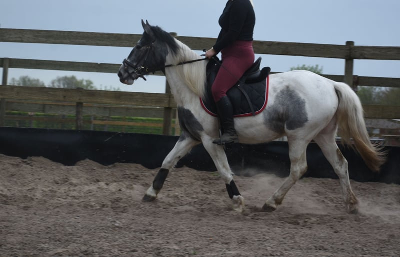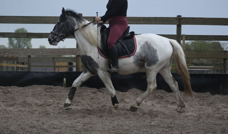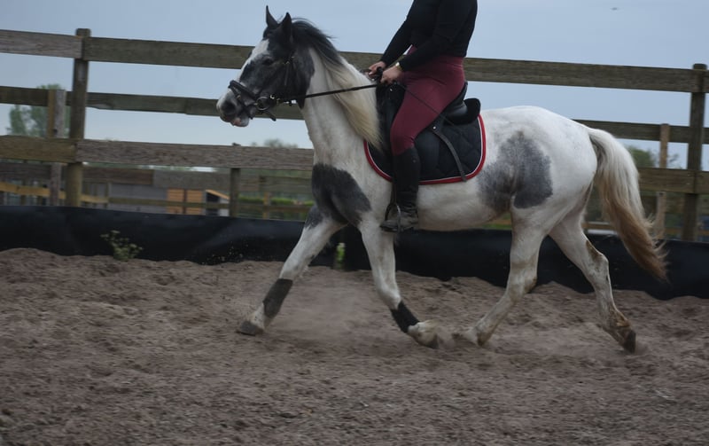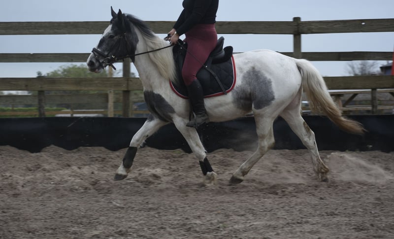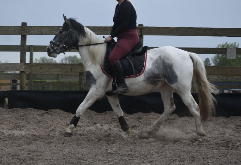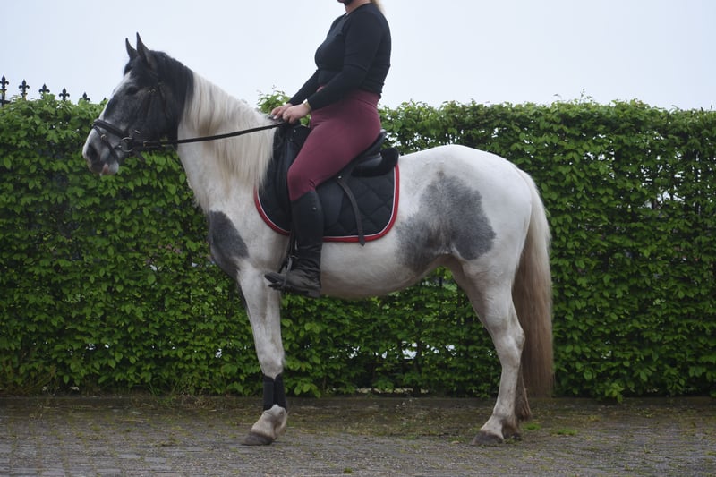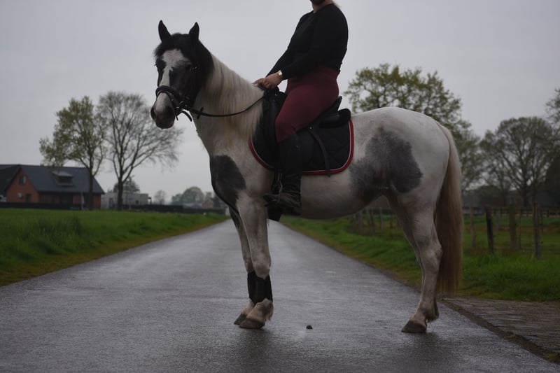 Traffic-safe, simple Tinker mare Pintodame Lucky is a Dutch-born Tinker/Pinto mare, characterized by her blue-and-white coat pattern and a beautiful pony-like build. She currently measures approximately 1.47 meters and is still growing. She is registered with AES (blue paper). Her mother is Tinka. Lucky is a young three-year-old mare still in development. As with any young horse, it is important that she continues to be handled by an experienced person who is consistent in groundwork and knows what they are doing. She was a bottle-fed foal and is therefore very familiar with humans on one hand, but on the other hand, she must not see humans as her equals, as this could lead to dangerous situations. The person working with her on the ground needs to be very clear and set boundaries. The person riding her can simply enjoy a very relaxed animal 🙂 Recently, Lucky has made significant progress with us. She is now being ridden and we see her confidence and development grow daily. She is really starting to enjoy working with humans and is blossoming more and more in her work. Under the saddle, she is completely calm and very traffic-safe with us! Lucky is healthy, vetted, and integrated into the herd, from which she also learns positively, especially from the older mares. The previous owner shared the following about her: “Lucky (Twilight), as I called her, was purchased during a period when I was recovering from a serious accident. I saw a golden pony in her, but due to my own insecurity and fear, I couldn't give her what she needed. Groundwork with her went well: she responded to hand signals and was eager to learn, especially with a treat as a reward. However, she needs a confident rider who can guide her with calmness, clarity, and trust. In the right hands, she is truly a fantastic horse, and that’s what she deserves.” Price: €3850
