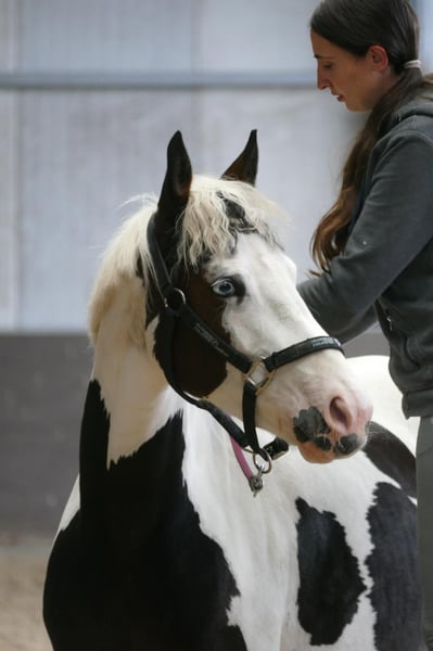 Verkaufe talentierte Pinto-Stute – ideal für Springreiter und Pinto-Liebhaber Die Stute ist reinerbig ( homozygot ) Als Fohlen ist sie als Brilliantfohlen ausgezeichnet worden. Gesamtnote 8,6 Zum Verkauf steht die 6-jährige Stute „Vision of Dreams“ – liebevoll Dreamy oder Dreams genannt. Dreamy ist ein echtes Mädchenpony und genießt es, im Mittelpunkt zu stehen. Mit ihrem charmanten Wesen weiß sie zu gefallen. Sie ist ca.155 cm groß und deckt auch größere Reiter gut ab – die Reiterin auf dem Foto ist 1,79/1,80 m groß. Seit Juni letzten Jahres ist sie unter dem Sattel. Zuvor wurde sie behutsam über Vertrauens- und Bodenarbeit aufgebaut, um eine solide Basis für ihre weitere Ausbildung zu schaffen. Sie ist stets bemüht, ihrem Reiter alles recht zu machen, bringt jedoch auch den typischen Ponycharakter mit und benötigt daher eine klare, konsequente Führung. Sie wird nicht als Kinderpony verkauft, da sie einen Reiter braucht, der ihr Sicherheit vermittelt. In der Dressur zeigt sie sich sicher in Schritt, Trab und Galopp. Übergänge, Stellung und Biegung werden regelmäßig erarbeitet. Sie kennt die Führmaschine, Laufband, ist gut sozialisiert in der Herde und hat bereits erste kleine Sprünge absolviert. Stangenarbeit gehört selbstverständlich zu ihrem Trainingsalltag. Da großer Wert auf eine schonende und altersgerechte Ausbildung gelegt wird, bekommt sie die nötige Zeit zur körperlichen und mentalen Entwicklung. Gesucht wird ein 5-Sterne-Zuhause für diese besondere Stute – ideal für jemanden, der sich sein Pony weiter ausbilden und gemeinsam wachsen möchte. Wir wünschen uns ein Zuhause, in dem sie weiter gefördert und gefordert wird, aber auch Liebe und Aufmerksamkeit erhält. Um Reittourismus zu vermeiden, berechnen wir 30 € für Proberitte, die selbstverständlich beim Kauf verrechnet werden. Da sie weiterhin im Beritt steht, steigt der Preis mit weiterer Ausbildung und Leistung. Aufgrund ihrer guten Abstammung ist sie zudem auch für eine spätere Zucht sehr interessant. Bei ernsthaftem Interesse freuen wir uns über eine Nachricht. ! kein Verkauf am Schulbetriebe! Bei Interesse oder für weitere Informationen stehe ich gerne zur Verfügung.