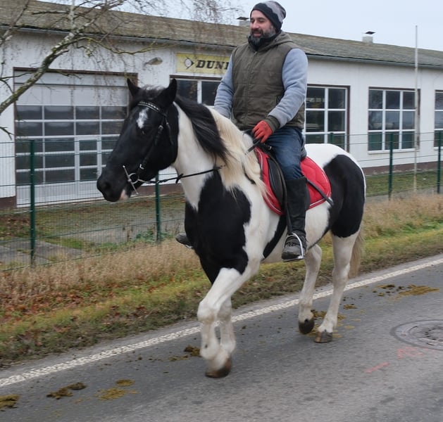 Einfache, unkomplizierte Stute,brav im Umgang und problemlos zu reiten. Sicher im Straßenverkehr und Gelände. Lora ist auch einspännig gefahren. 6 Jahre, 152cm Bei Interesse bitte anrufen, keine Mail! Für eventuell auftretende Fehler in der Beschreibung gilt keine Gewähr! Tel.: 0173-3843407 Da es sich um ein lebendes Tier handelt, sind dies subjektive Eindrücke des Anbieters und keine zugesicherten Eigenschaften des Tieres! Ständig schöne Fahr-u.Freizeitpferdesowie neue Kutschen verschiedener Modelle preiswert im Angebot. Anschrift Stall: 99628 Buttstädt, Oberwendenstraße 39