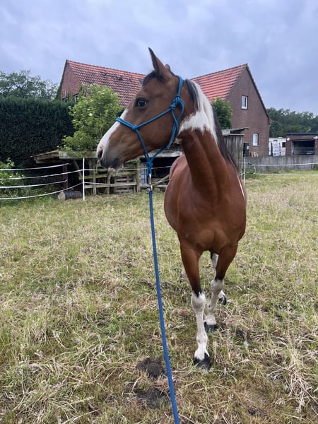 The pretty Amy is looking for a new home. - Mare - 8 years old - approximately 1.58m tall - Papers from ZSSE with full pedigree - Not ridden - Covered by Quarter Horse stallion (Jeannes Happy Light) for 2026 Amy has not done much in her life so far, making her a true diamond in the rough. She spent her first four years on a large pasture with many companions. After that, she joined a family and often went out on trail rides as a lead horse and was lunged. However, there was not enough time to train her. Currently, she is in a herd of mares in an open stable but is also familiar with boxes and mixed herds. In the herd, she is uncomplicated and low-ranking. She has had a saddle on her back and has been lunged with it. She is quite sensitive and initially skeptical towards new things, but always manageable. She observes but does not run away or anything like that. She needs a constant person to rely on, and then she will go anywhere with you. If you are looking for a horse to train yourself, she is the right one for you. Feel free to reach out with any questions or to get to know her.
