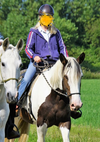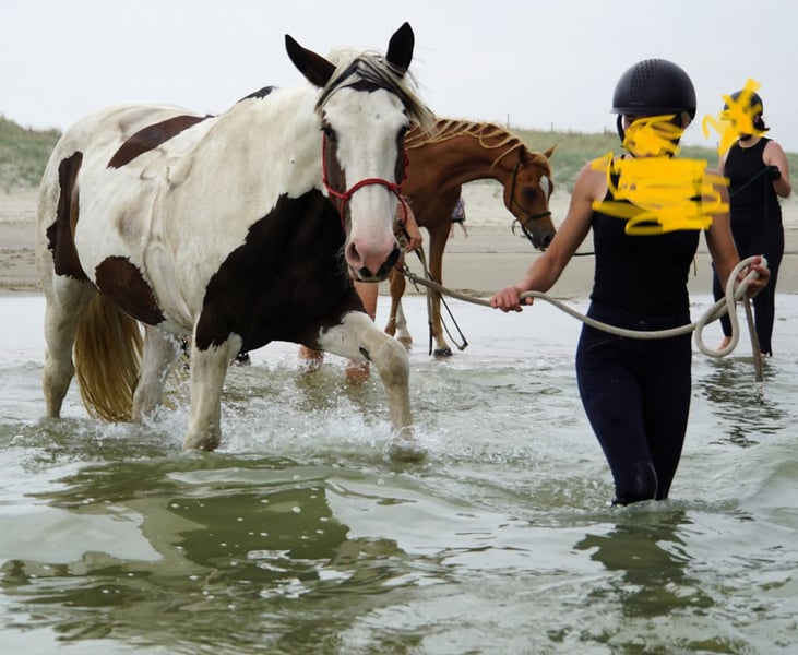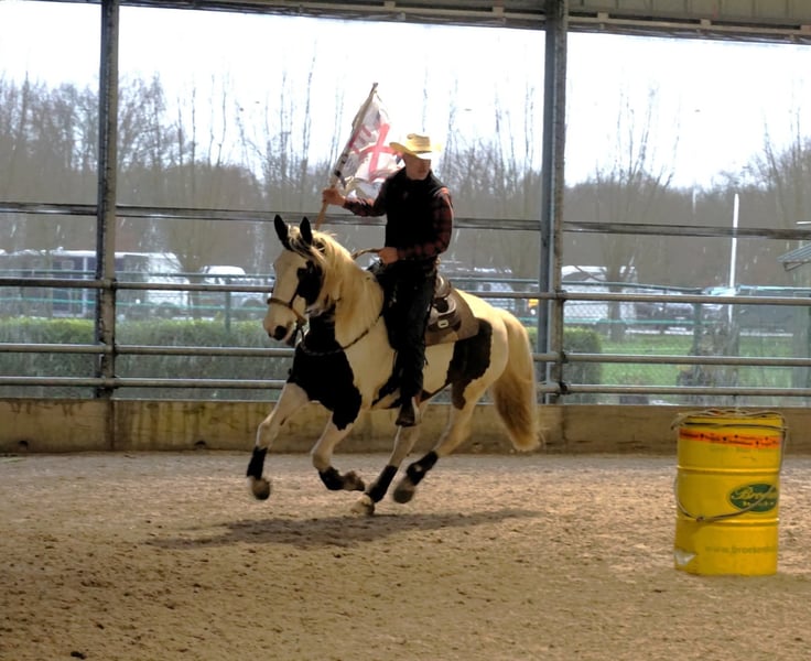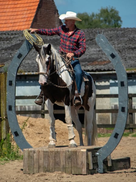 Te koop: Mooie gevlekt-pinto merrie, geboren in 2016 Deze prachtige pintos merrie combineert haar unieke gevlekte vacht met een vriendelijke en rustige uitstraling. Met een stokmaat van 167 cm biedt ze een ideaal formaat voor recreatief rijden en een breed scala aan ruiters. Ze is goed doorgereden, bitloos, grondwerk en heeft een betrouwbare, rustige aard, waardoor ze zich uitstekend leent voor recreatieve ritten, mennen, als gezelschapspaard. Trail en extreme cowboy wedstrijden heeft ze reeds op regelmatige basis deelgenomen en demo's toont ze haar op haar best. Ze is gezond, goed verzorgd en gemakkelijk in de omgang. Haar opvallende uiterlijk en haar rustige karakter maken haar tot een aantrekkelijke keuze voor ruiters die op zoek zijn naar een betrouwbare en charmante metgezel in de recreatie. Een top all rounder. Wordt verkocht door te weinig tijd nog vr haar. Bent u geïnteresseerd in deze veelzijdige pintos merrie? Neem gerust contact op voor meer informatie of een kennismaking.