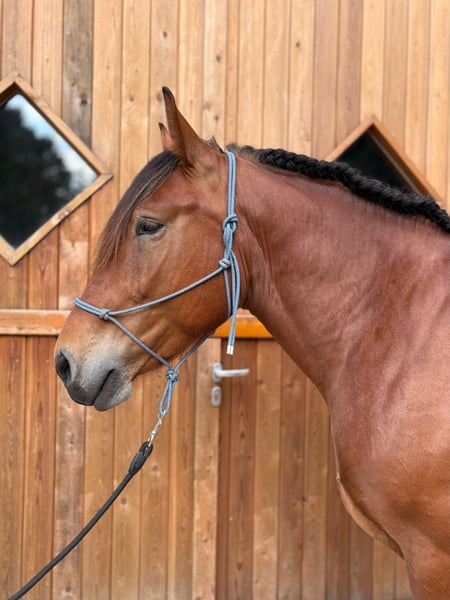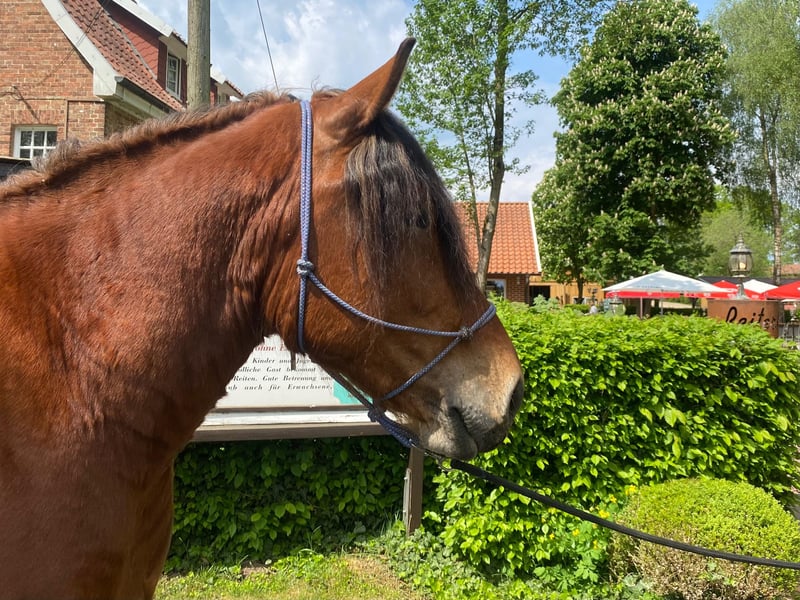Wunderschöner Super-Kerl, der einfach immer nur Spaß macht. Bei uns geritten im Gelände, in der Halle, auf dem Platz, longiert, Bodenarbeit und Gelassenheitstraining absolviert. Brav beim Hufschmied. Das Kerlchen ist so brav, ein Traum! Ja, er ist Jung - aber er ist daher auch noch nicht durch tausend Hände gegangen und jeder Mensch hat an ihm irgendetwas ausprobiert! Daher ist er völlig ausgeglichen und lässt alles Neue sehr entspannt auf sich zukommen. Hier bei uns ist er ein Traum von Freundlichkeit und Coolheit. Entsprechend sucht er ein Zuhause bei dem er Menschen weiterhin zeigen kann wie toll Pferde sind und welch reines Herzchen diese Tiere haben. Gehalten aktuell im Offenstall in einer großen Herde - absolut verträglich! Er kennt es aber auch in der Box zu stehen nachts oder zwischendurch nach der Arbeit. Pferde sind LEBEWESEN: die hier beschriebenen Eigenschaften beruhen auf den Tatsachen wie sich das Pferd bei uns im Umgang und bei der Arbeit gezeigt hat. Wir freuen uns auf Ihren Anruf unter Tel:05435443 - weitere Fragen beantworten wir gerne