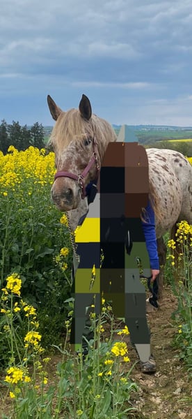 Holly ist eine liebenswerte, charakterstarke, wunderschöne Stute in Sonderlackierung. Sie wird dieses Jahr 15 Jahre alt, ist geritten und gefahren. Sie ist seit 3 Jahren in meinem Besitz und war zu der Zeit nie krank. Ich konnte nie testen wie gut sie gefahren ist. Beim Reiten war sie brav und nervenstark im Gelände. Sie geht gut vorwärts. Leider wurde sie aus persönlichen Gründen die letzten 2 Jahre kaum geritten. Dies ist auch der Grund für ihren Verkauf, denn ich kann ihr leider auch in Zukunft nicht mehr gerecht werden. Holly brauch etwas Zeit um in ihrem neuen Zuhause anzukommen. Aus diesen Gründen verkaufe ich sie nicht als Anfängerpferd. Sie brauch eine feste Hand die sich am Anfang nicht so leicht beeindrucken lässt. Bei ihrem Vorbesitzer hatte sie bereits ein Fohlen, was sich durch ihre wirklich schöne Sonderlackierung "Tigerschecke" auch nochmal anbieten würde. Es handelt sich nicht um einen Notverkauf ! Momentan steht sie in einer gemischten Herde im Offenstall und ist eher Rang hoch. Holly ist ein absolutes Geländepferd und perfekt für die Offenstallhaltung. Ich wünsche mir für sie ein schönes Zuhause und einen Menschen der Spaß mit und an ihr hat. Bei Fragen oder Interesse könnt ihr euch gerne melden!
