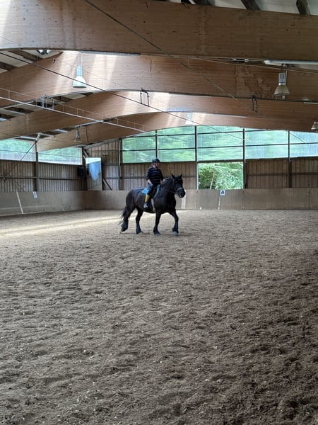 Geboren 28.04.2017, Rappe, Equidenpass vorhanden Aktuell barhuf, vorne aktuell leicht fühlig, nicht beschlagen, da Hufschmied aussetzen von 2 bis 3 Beschlagsrunden vorgeschlagen hat und bei aktuellem Weg von Paddock zum Stall und umgekehrt kein Beschlagen notwendig ist. Ursprünglich zweifach beschlagen, Hufeisen noch vorhanden. Sehr liebe und gutmütige Stute, verträgt sich gut mit anderen, Schmiede und verladefromm, ehemaliges Schulpferd