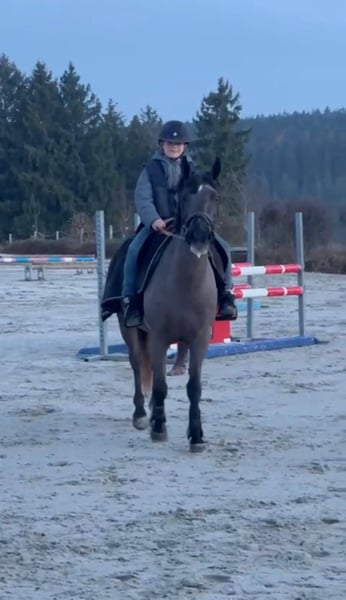 Niedliche D-Pony-Stute (145 cm), 5 Jahre alt. Vielseitig, sehr brave und mit ausgeglichenem Charakter – ideal für eine Familie oder einen jungen Reiter in Ausbildung. Pac zeichnet sich durch ihre Intelligenz, ihren guten Willen und ihre permanente Lernbereitschaft aus. Sie lernt schnell und ist ihrem Reiter stets aufmerksam. - Im Dressurgrundlagen sind die Basics bereits gut gefestigt. - Im Springen bewältigt sie derzeit kleine Parcours bis 60 cm. Wunderschöne Freispringen, top Technik, zeigt das Potenzial, in Zukunft mindestens 1 m/110 cm zu springen. - Im Cross ist aufgrund ihres mentalen Charakters alles kein Problem. (Tests folgen, sobald es wieder möglich ist, auf den Cross-Country-Geländen zu trainieren.) - Beim Ausritt ist sie ein echtes Vergnügen, sie geht allein oder in Begleitung ohne Stress. Im Alltag ist sie äußerst unkompliziert: • Pflege ohne Schwierigkeiten (Putzen, Waschen, Schmied, Schermaschine, Tierarzt, etc.) • Transportiert sich problemlos • Am Boden freundlich und respektvoll Eine liebenswerte Pony-Stute, die den Kontakt zum Menschen schätzt und gerne umsorgt wird. Perfekt, um in ruhigem Tempo im Training voranzukommen und dabei Freude zu haben. Alle Untersuchungen sind aktuell: Tierarztbesuch inklusive Röntgenbilder vorhanden. Zähne gemacht, entwurmt, geimpft. 📍 Sichtbar in Belgien, in der Nähe von Lüttich. 📩 Weitere Infos und Videos auf Anfrage per WhatsApp: 0032479481088
