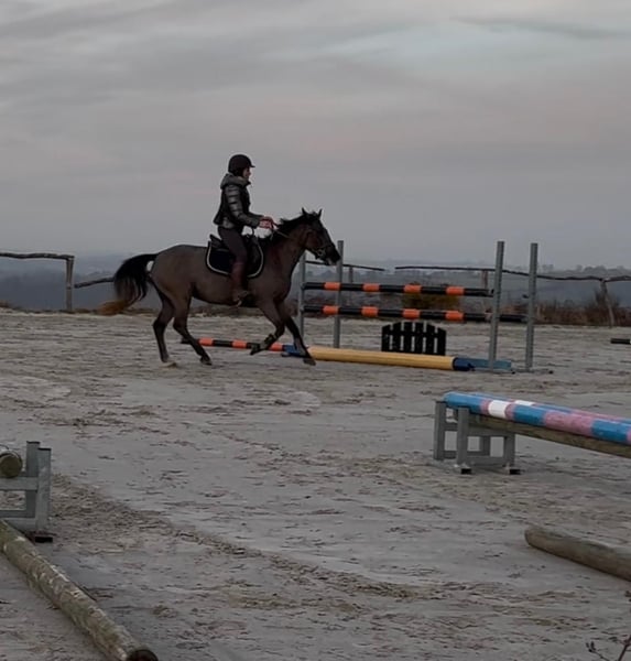 Adorable ponette taille D, (145 cm) âgée de 5 ans. Polyvalente, très brave et dotée d’un excellent mental, elle convient parfaitement pour une famille ou un jeune cavalier encadré. Pac se distingue par son intelligence, sa bonne volonté et son envie permanente de bien faire. Elle apprend vite et se montre toujours à l’écoute de son cavalier. - En dressage, les bases sont largement acquises. - En obstacle, elle saute un petit parcours sur 60 cm actuellement. Magnifique sauts en liberté . Top technique , montre des moyens pour faire 1m/110 au moins à terme . - En cross, vu son mental, cela sera une formalité. ( sera testée dès qu'il sera possible de retourner sur les terrains ) - En balade, c'est un vrai bonheur, elle part seule ou accompagnée sans stress. Au quotidien, elle est extrêmement facile : • soins sans difficulté (pansage, douche, maréchal, tonte, véto, ...) • se transporte facilement • gentille et respectueuse à pied Une ponette attachante, proche de l’humain, qui adore qu’on s’occupe d’elle. Idéale pour évoluer tranquillement dans le travail tout en se faisant plaisir. En ordre de tout : Visite véto dispo + radios OK . Dents faites , vermifugée, vaccinée . 📍 Visible en Belgique, du côté de Liège . 📩 Infos et vidéos sur demande par whatsapp : 0032479481088