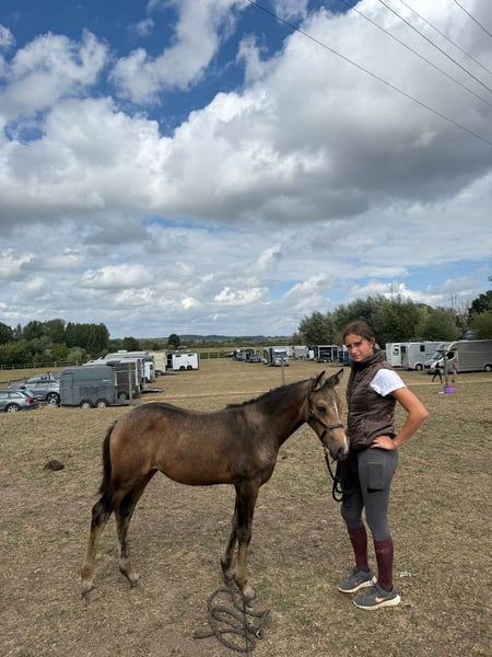 Wunderschönes, dressurgezüchtetes Stutfohlen aus dunklem Buckskin. Sehr brav und unbeeindruckt. Sie wird ein gutes Kinderpony und ist aufgrund ihrer Mutterlinie auch für die Zucht sehr interessant. Die BWP-Online-Fohlenauktion beginnt am Freitag, den 3. Oktober um 10:00 Uhr und endet am Dienstag, den 7. Oktober. Besichtigung vor der Auktion möglich. Vater: Deluxe, ein deutsches Reitpony, BRP-gekört. Ein sehr braver Hengst, startet auf CDN Level 3 (FEI Team & Einzel) und nimmt international an Turnieren teil. Geritten von einer 14-jährigen Hündin. Mutter: Vedetta Brenjenhofs: ein braves, unerschütterliches Pony mit viel Pedigree, startet im Fahrsport. Großmutter: HoltHausen Arwen Elvira: Sie ist die Vollschwester von HoltHausen Elessar, Holthausen Rohan, Holthausen Nienna und Holthausen Telperion. Holthausen Elessar: Reservesieger der niederländischen Dressurtalente 5-jährig 2013. Reserve-Bundessieger Deutschland 2015: Freispringen, Dressur, Allround. Aktiv in der Dressur bis Klasse Z2 mit einer langen Liste von Auszeichnungen. Aktiv im Springsport bis Klasse L. Hat zwei gekörte Söhne und viele Ster- und Kroon-Stuten. Zur Zucht in den Niederlanden in de Koetsiershoeve. Holthausen Rohan: Gekört in Frankreich im Haras des Cours. 2007: 9. Platz in Frankreich in allen Rassen. Elitehengst. Holthausen Telperion: Gute Leistung in Frankreich. Holthausen Nienna: Ster, Kroon, Prestatie-Zuchtstute, Elite, mit 16 Jahren die jüngste in den Niederlanden. Vater von drei gekörten Hengsten und einer Kroon-Stute. HoltHausen Frodo II: Sohn von Nienna, Dressur Klasse Z, Springen Klasse M, 1 gekörter Sohn, 2 Sternehengste, 1 Sternewallach, 7 Kronenstuten. Holthausen Loriën: Sohn von Nienna, Spitzensportpony. Weitere Informationen finden Sie hier: https://www.bwp.auction/veiling/GUINI-VAN-DE-KROMME-HEI-DELUXE-x-ETERNITY-VAN-DE-NRANCH Zusätzliches Video per WhatsApp oder https://www.facebook.com/profile.php?id=100010086242943
