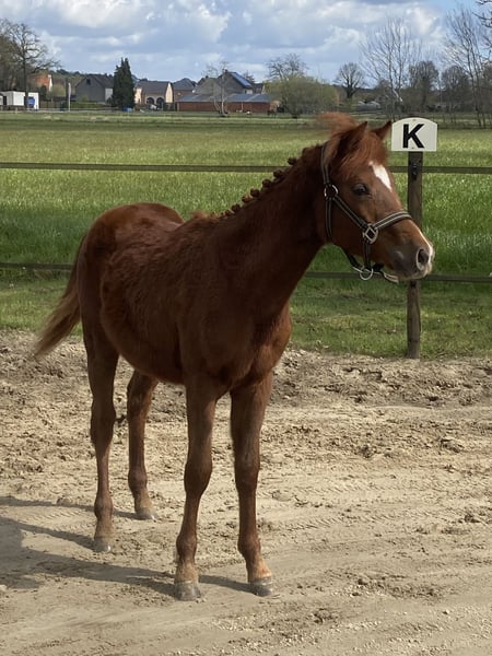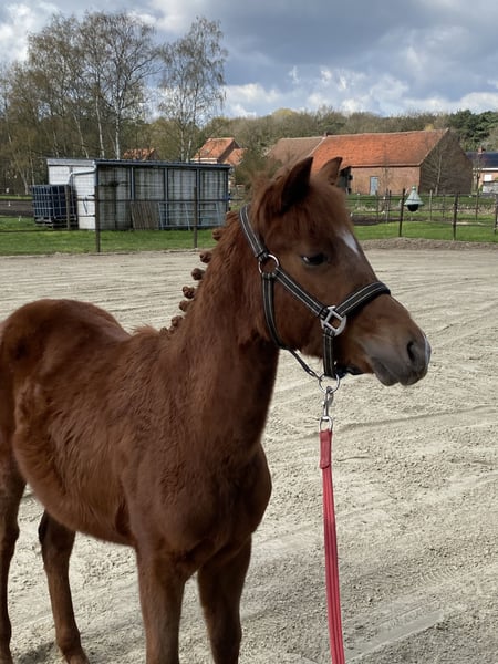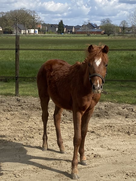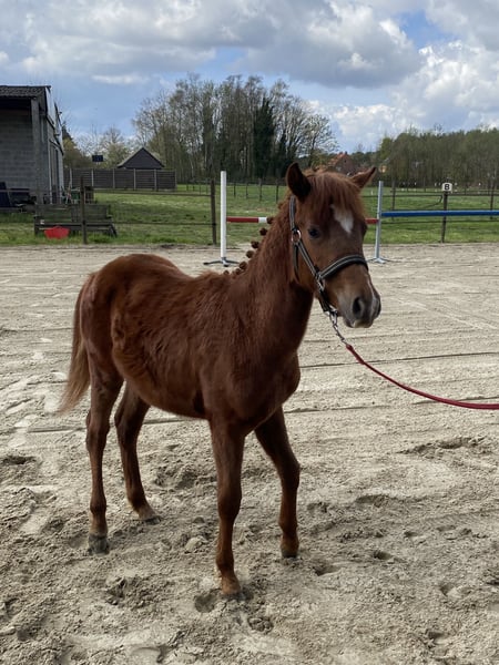 Hengstenveulen Guus L van het Wilgorenhof – geboren op 2 juni 2025 – is een uitzonderlijke belofte voor de toekomst. Dit hoogbenige, bloedgemaakte veulen combineert uitstraling, souplesse en kracht in één elegant geheel. Guus komt uit een bewezen prestatielijn. Zijn vader, Casper van de Groenheuvel, is een erkende BRP-hengst met een indrukwekkende achtergrond. Beide ouders van Casper hebben zich op internationaal niveau bewezen in de 120–130 cm sport, wat garant staat voor kwaliteit, vermogen en instelling. Met een huidige schofthoogte van circa 126cm ontwikkelt Guus zich uitstekend en toont hij alle kenmerken van een sportpony. Zijn correcte bouw, atletisch vermogen en energieke uitstraling maken hem nu al een opvallende verschijning. Hij beweegt lichtvoetig, met balans en een natuurlijke beweging die direct in het oog springt. Daarnaast blinkt Guus uit in zijn fijne karakter. Hij vertoont geen stalgebreken, is braaf en betrouwbaar in de omgang, gedraagt zich keurig bij de dierenarts en gaat vlot en zonder problemen op de vrachtwagen. Voor wie op zoek is naar een investering in de toekomst: Guus L van het Wilgorenhof biedt niet alleen sterke genen, maar ook de instelling en het karakter om het verschil te maken in de ring. Een unieke kans om een talentvolle jonge hengst met bewezen bloedlijnen én uitstekend temperament in handen te krijgen.