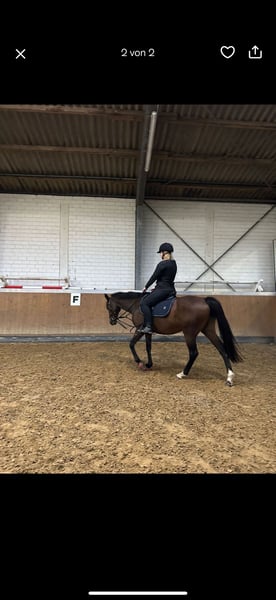 For my 14-year-old mare, I am looking for a nice, loving home. She is an absolute treasure to handle – very people-oriented, cuddly, and enjoys extensive grooming and cuddling sessions. At the farrier and saddler, she always behaves well and is relaxed. She prefers to be out on the trails – that’s where she really comes alive and has a lot of joy and energy when riding out. She could do that every day. According to her previous owner, she also has experience in the arena. Since the weather has often not cooperated with us, we have primarily been in the indoor arena. She was not familiar with it at first but showed herself to be very well-behaved during groundwork. She is already working nicely at the walk, but she still needs a bit of security and routine in the trot and canter – here she is looking for an experienced rider who can continue to support her calmly and consistently. She has recently spent a lot of time in the pasture and will need to be properly reintroduced to riding. She is by no means malicious, but she is sensitive and eager to learn – with patience, trust, and clear guidance, she will surely become a great riding horse. A suitable saddle can be provided for an additional fee. It has just been newly fitted and is in top condition. 📍 If you are seriously interested or have questions, I look forward to hearing from you.