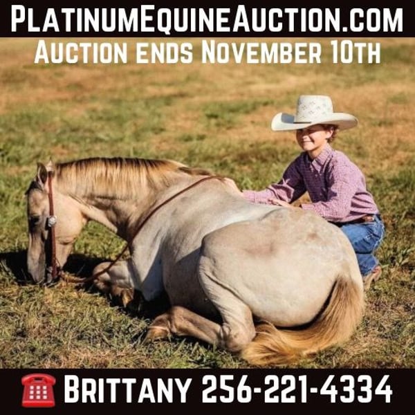 ONLINE AUCTION Place your bids at www.PlatinumEquineAuction.com Starting Bid $3500 Auction ends November 10th, 2024 Need a new saddle? Check out White Rock Saddles on our website or Facebook! Gambler is a 14 year old POA pony that is 51 inches tall. This little gelding has been ridden by all age children and is safe for the little ones he has been trail ridden extensively traffic safe he does all of the play day events one hand broke and a joy to ride and be around stand perfect for the farrier lays down on command just an all around good gentle safe pony check his video out sound and no vices children tested parent approved. Contact Brittany Little 256-221-4334. Located in Mt. Hope, AL. ONLINE AUCTION Place your bids at www.PlatinumEquineAuction.com Starting Bid $3500 Auction ends November 10th, 2024 Need a new saddle? Check out White Rock Saddles on our website or Facebook!