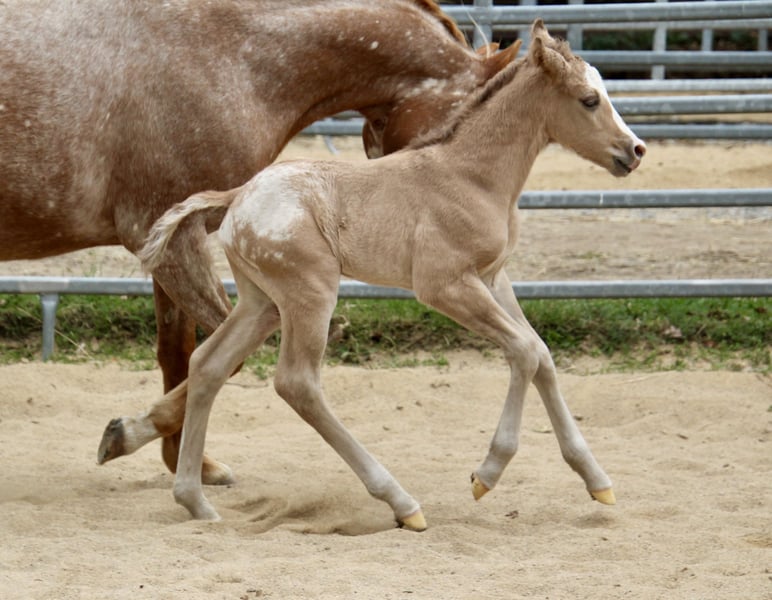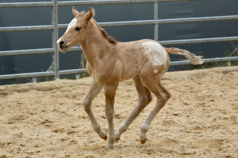 Sire: PR All Spots on Chicago ( letzten Bilder ) Dam: Princess Twister Doc Ein ganz besonderes Pony of the Americas Hengstfohlen sucht seinen Menschen! Dieses typvolle Fohlen überzeugt bereits jetzt mit einem tollen Gebäude: ein harmonischer Körperbau, ein kurzer, kräftiger Rücken und ein besonders feines, ausdrucksstarkes Köpfchen machen ihn zu einem echten Blickfang. Doch nicht nur optisch weiß er zu begeistern – auch sein Charakter lässt keine Wünsche offen. Er zeigt sich von Anfang an freundlich, neugierig und sehr zugänglich im Umgang mit Menschen. Abstammungsmäßig lässt dieses Fohlen ebenfalls keine Wünsche offen: Er stammt aus einer hervorragenden Linie, sein Vater ist gekört und steht für Qualität und Verlässlichkeit. Aktuell wächst der kleine Hengst im Herdenverband mit anderen Fohlen auf, wodurch er bestens sozialisiert ist und ein gesundes Verhalten entwickelt. Ein vielversprechender junger Begleiter mit besten Voraussetzungen für Sport, Freizeit oder Zucht! Bei Interesse erzähle ich gern mehr über den kleinen Mann Ratenzahlung möglich www.east-ranch-poa.de