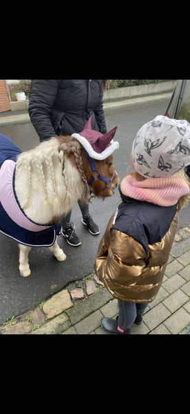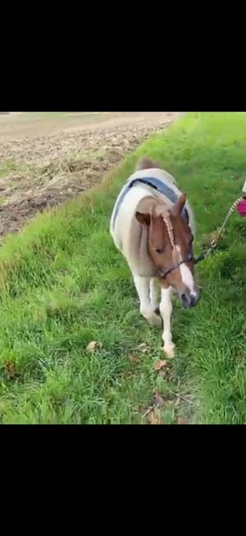 Prinz est un hongre Falabella de huit ans, inscrit et testé génétiquement, mesurant environ 89 cm. Il se montre très amical et proche de l'humain au quotidien. Il est doux en main et convient aux enfants, bien qu'une certaine supervision soit encore recommandée. Prinz connaît la marche en main et sous la selle, est en apprentissage et s'entend parfaitement avec ses congénères. Sa taille, son tempérament et ses expériences passées en font également un bon candidat pour le driving. Cependant, il nécessite encore un peu d’éducation, ce qui peut être facilement réalisé avec patience et constance. Cédée à regret en raison de son passage à un poney plus grand. Le prix est négociable, surtout pour un bon foyer, idéalement en paddock, et reste absolument négociable.