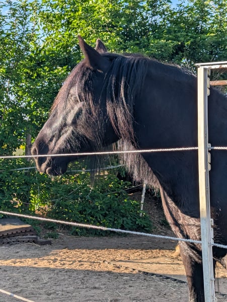 Nous cherchons un nouveau foyer pour Streamlet Una Stella. Stella est robuste, en bonne santé, vit au pré, mais connaît aussi le box. Dans notre troupeau mixte, elle est plutôt de rang inférieur. Elle a de bons sabots, est calme lors du parage et est pieds nus. Elle n'a pas été montée depuis un certain temps, mais elle a été montée, même par une fille de 12 ans. Stella a également été utilisée dans la thérapie assistée par les animaux. Elle a besoin d'une approche juste et souveraine, d'une personne qui lui apporte de la sécurité et qui commence par travailler avec elle au sol. Stella souhaite d'abord établir une relation et faire connaissance avec son humain. En raison de sa lignée, elle est également intéressante pour l'élevage de conservation des poneys à poils.