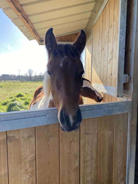Pépite pouliche plein papier est née le samedi 7 juin 2025 Par Tinotauros de Florys Déjà très grande pour son âge, elle se montre très curieuse . Elle est gentille et proche de l'homme, bien manipulée elle marche en longe, donne les pieds. Elle est complémentée A jour vaccin, vermifuge, Marechal
