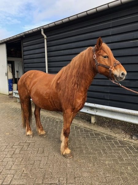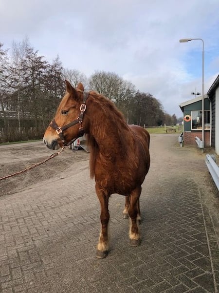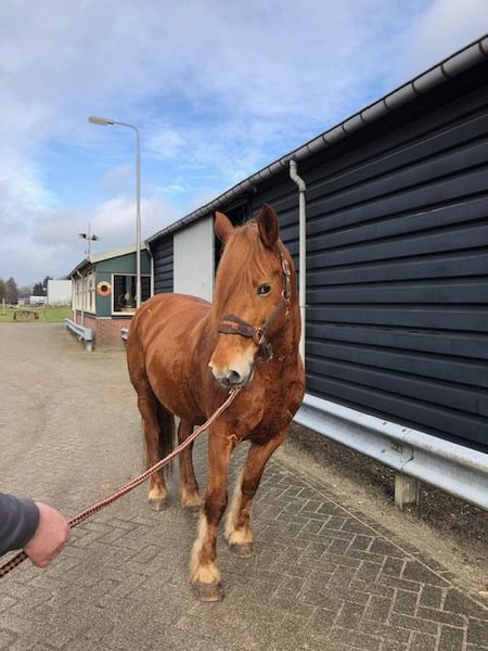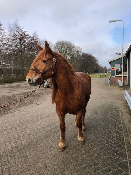 Hierbij onze lieve happy! Happy is een Percheron en daarom een echte gewichtsdrager. Ze is in de omgang heel lief maar wel eenkennig en oplettend. Daarom is ze ook niet geschikt voor beginners. Happy is een paardje die vertrouwen nodig heeft van zijn ruiter. Ze is super braaf langs de weg, vrachtwagens en trekker nergens kijkt ze naar en heeft buiten een fijn voorwaarts ritme. In de rijbak is ze nog erg groen maar wil graag voor je werken. Happy heeft verder goede sterke hoeven en geen stal of trailer gebreken. Ook heeft ze geen verleden met eczeem of dergelijken. Happy is een echt maatje voor andere paarden en kan met ieder paard. Het liefste zien wij haar gaan naar iemand die haar naar buiten zal nemen en die zelf niet onzeker is. ook voor grondwerk is ze enorm geschikt. Wij vermoeden dat ze vroeger geslagen door dat ze niet zomaar iemand vertrouwd maar happy zal nooit schoppen of bokken. Ook wordt ze daarom niet blij van sporen of de zweep. Ze ook enorm goed aan de hulpen. Ben jij nieuwsgierig geworden naar onze lieve happy neem dan contact op! Wij zijn ook zondags beschikbaar.