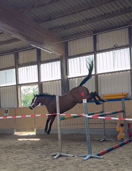 Z ciężkim sercem szukamy nowego, odpowiedniego domu dla naszej wymarzonej, utalentowanej klaczy. To prawdziwa sercowa koń – spokojna, łagodna, przyjazna dzieciom i bezproblemowa w codziennym użytkowaniu. Podczas załadunku, na wycieczkach czy jazdy bez siodła – wszystko znosi z cierpliwością i jest prawdziwym skarbem w codziennym kontakcie! Szczególnie wyróżnia się jej zdolność skokowa. Już skakała swobodnie do 1,40 m, a pod siodłem do 1,30 m. Pomimo dłuższej przerwy po okresie odchowu, na początku 2025 roku ponownie z powodzeniem startowała na konkursach, zarówno w skokach A, jak i L. Ponieważ ma dużo energii i chętnie idzie do przodu, jest mniej odpowiednia dla początkujących jeźdźców. Szukamy więc ambitnego ridera z doświadczeniem, który będzie czerpał radość z dalszego rozwijania jej dużego potencjału. Sprzedajemy ją wyłącznie z powodu braku czasu (studia) oraz faktu, że mój chłopak jest niestety dla niej zbyt ciężki. Dla nas jest prawdziwym skarbem i właśnie dlatego szukamy kogoś, kto będzie ją tak samo doceniał, jak my! Aktualny certyfikat zdrowia oraz 18 zdjęć RTG są dostępne. W razie pytań lub chęci obejrzenia, proszę o kontakt przez WhatsApp!