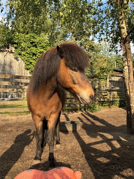 Ich biete hier meinen Islandwallach an. Er wird 12, ist 1,36m groß, gut angeritten, Fünfgänger und ist dänisch gezogen, ekzemfrei, lässt sich brav verladen, überall anfassen und auch der Schmied ist kein Problem, ebensowenig der Tierarzt. Er ist super sozial in der Herde und hier ein absolut souveräner Herdenchef. Warum ist er nun also ein Projektpferd? Er muss in der Vergangenheit so einiges erlebt haben, was ihn nachhaltig beeindruckt. Er ist extrem fein und sensibel und hatte Stress beim Aufsteigen. Wenn man oben ist, läuft er ganz prima und reagiert auf die leisesten Signale, geht auch mit Knotenhalfter artig und ist sehr aufmerksam. Allerdings neigt er bei hektischen Bewegungen oder unerwarteten Geräuschen (es sind ganz bestimmte) dazu, panisch zu werden. Er macht das nicht aus bösem Willen, er hat dann einfach echt Panik. Auch ihn einzufangen kann etwas dauern, wenn man mit Spannung oder Stress an ihn heranwill. Bodenarbeit macht er sehr fein und motiviert, Freiarbeit liebt er und mit Kindern ist er auch ziemlich gechillt. Ich gebe ihn nur her, wenn er seinen Menschen findet und sich jemand echt in ihn verliebt. Er ist mir sehr ans Herz gewachsen und er muss auf keinen Fall verkauft werden. Dennoch frage ich mich, ob ich nicht die falsche Person bin, um ihm aus seinem Trauma zu helfen. Medizinisch spricht nichts dagegen, dass er Reitpferd oder Geländepartner sein kann, mental zur Zeit einiges. Also, vielleicht kennt sich jemand damit aus und sucht ein wunderschönes Pferd wie ihn. Er ist etwas ganz Besonderes. Weitere Fragen beantworte ich gerne. Ich bitte aber um Verständnis, dass ein Probereiten gewiss nicht beim ersten Besuch und auch nur in Ausnahmefällen und sehr eingeschränkt stattfinden kann. Das dient zum Schutz meines Pferdes. Es gilt absolut Platz vor Preis!