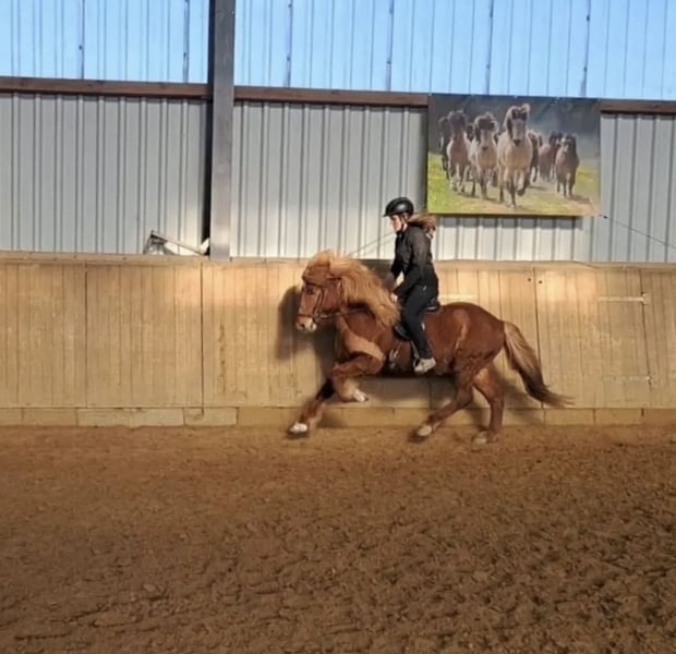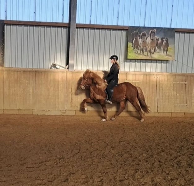 Verkauf im Auftrag Álfur frá Vatnsenda *2013 M: Hafdís frá Ármoti V: Konsert frá Korpu Álfur ist ein sensibler, viergängiger Wallach, der sich vorallem für erfahrene, unerschrockene Reiter eignet. Er ist kein Anfänger- oder Kinderpferd, sondern sucht einen sicheren, konsequenten Menschen mit Gefühl, der seine besonderen Eigenschaften zu schätzen weiß und ihm die nötige Orientierung geben kann. Unter dem Sattel überzeugt er mit einem ganz taktklaren, gleichmäßigen Tölt bis ins hohe Tempo mit natürlicher Aufrichtung bei mittlerer Bewegungshöhe. Sein Trab ist bei guter Losgelassenheit ebenfalls vorhanden. Der Galopp ist schön gesprungen und entspricht in Ausdruck und Qualität dem Tölt. Álfur ist ein sensibles Pferd, welches in unsicheren Situationen zum durchgehen neigt, besonders wenn ihm die Führung fehlt oder er seinem Menschen noch nicht vertraut. Hat er eine Bezugsperson, die ihm Sicherheit vermittelt, zeigt er sich kooperativ und lässt sich gut arbeiten. Mit klarer, ruhiger und vertrauensvoller Führung entwickelt er sich zu einem motivierten und leistungsbereiten Partner! Er ist ideal für ambitionierte Freizeitreiter oder Turnierreiter, die ein sensibles aber doch gangstarkes Pferd zu schätzen wissen und bereit sind, gemeinsam zu einem starken Team zusammen zu wachsen.