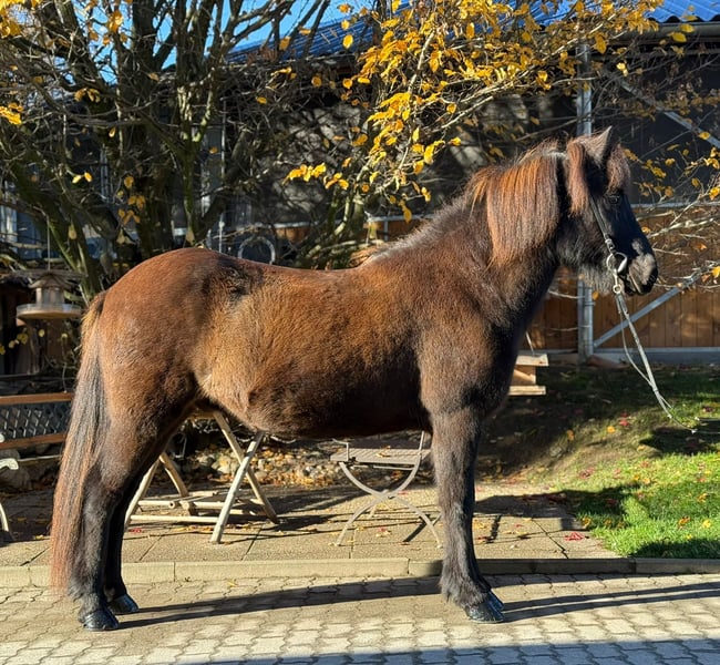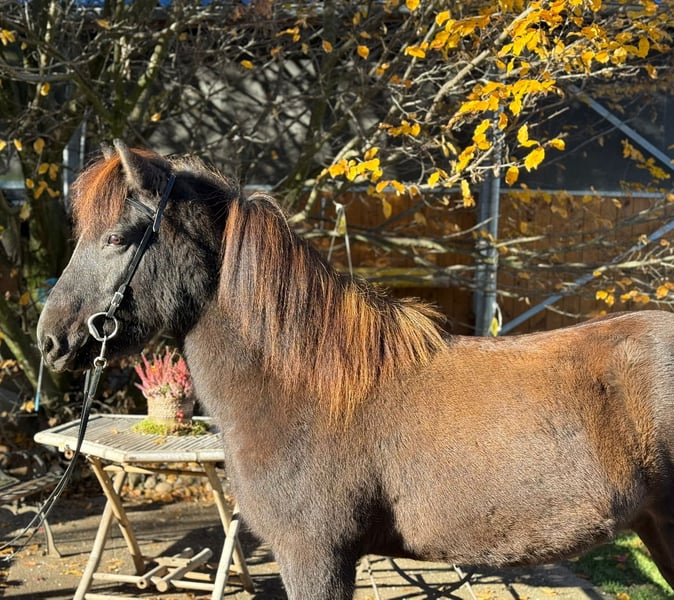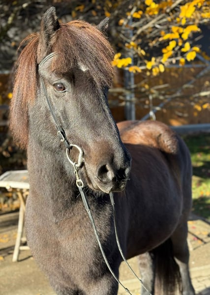 Spyrnir frá Álfhólum Gelding, 14.1 hh, born in 2013 in Iceland Four-gaited Free of eczema Vaccinated, shod, and dewormed ✅ Sire: Íkon frá Hákoti 7.98 (Ext 7.80, Re 8.10) Dam: Töfri frá Kjartansstöðum 8.45 (Ext 8.29, Re 8.55) ‼️ Granddam: Spyrna frá Vorsabæ II 7.85 (Ext 7.85, Re 7.84) Great-granddam: Snjall frá Vorsabæ II 8.31 (Ext 8.18, Re 8.40) ‼️ This stunning black gelding captivates not only with his solid build and distinctive star but also with his friendly nature. He is a reliable partner you can always count on. Under saddle, he impresses with four clearly separated gaits: an easy-to-ride tölt that is simply fun, a lively trot, an uphill, powerful canter, and a relaxed, comfortable walk that invites you to breathe easy. He is familiar with indoor arena, round pen, and oval track, and enjoys lunging, showing attentiveness and eagerness to learn. However, his heart truly belongs to trail riding – here, he truly blossoms and happily tölts through the terrain. In everyday handling, he is an absolute gem: he knows double-stall and herd life, is uncomplicated, social, and always friendly. A horse you simply have to like – with a temperament that provides calm, joy, and makes each day a little brighter. Spyrnir can be visited and tested at any time by arrangement at our place in A-5221 Lochen am See.