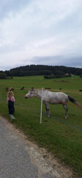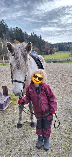 Hübscher Isländerwallach mit viel Geländeerfahrung und ausgeglicherner Art! Herjólfur frá Hestheimum ✨ geb. 04.08.2012 in Island | Grauschimmel | ca. 1,42 m | 4-Gänger Standort: 95472 Schöfweg (zwischen Deggendorf u. Passau) Herjólfur ist ein freundlicher, beziehungsorientierter Wallach, der seinem Menschen gerne begegnet und eine echte Beziehung aufbaut. Er zeigt sich aufmerksam, kooperativ und arbeitet sowohl unter dem Sattel als auch vom Boden aus gerne mit. Ganglich verfügt er über sehr viel Tölt mit angenehm weicher Bewegungsqualität. Auch sein Galopp ist butterweich und sehr gut zu sitzen. Er verfügt über klar getrennte Gänge. Hery lässt sich gut über den Rücken und feine Gewichtshilfen reiten und möchte klar, strukturiert und bewusst geritten werden. Etwas Erfahrung im Töltreiten ist daher von Vorteil. Herjólfur hat ein mittleres Temperament – aufmerksam, ohne nervös zu sein. Im Gelände zeigt er sich zuverlässig und ist ein schöner Partner für entspannte Ausritte. Wenn ihn etwas verunsichert, bleibt er stehen und orientiert sich an seinem Reiter. Er wurde im Oktober 2023 aus Island importiert und wird hier regelmäßig zu zweit oder in kleiner Gruppe im Gelände geritten. Auf dem Platz arbeitet er gut mit, braucht jedoch eine aktive Reiterhand. Er ist kein „Selbstläufer“ – man setzt sich nicht einfach drauf und er erledigt alles von allein. Er möchte geritten werden und freut sich über klare Hilfen und Teamwork. Herjólfur ist freundlich, menschenbezogen und kindergewöhnt und kennt außerdem Bodenarbeit, Equikinetik und die Wippe. In der Herde zeigt er sich unkompliziert. Reitergewicht bis ca. 75 kg. Gesundheitlich ist er gut versorgt: – ekzemfrei (steht ohne Ekzemdecke) – im Herbst leichte Sensibilität auf Grasmilben (gut regulierbar) – regelmäßig geimpft, Zähne gemacht – osteopathisch betreut – verladesicher und brav beim Hufschmied – aktuell barfuß bzw. mit Hufschuhen (zuvor Duplos) Herjólfur hatte eine Winterpause und wird aktuell wieder antrainiert. Er kann gerne vorgeritten werden. Ein aktuelle Reitvideo ist vorhanden und wird auf Anfrage gerne versendet. Wir geben ihn aus familiären Gründen unter Wert ab.