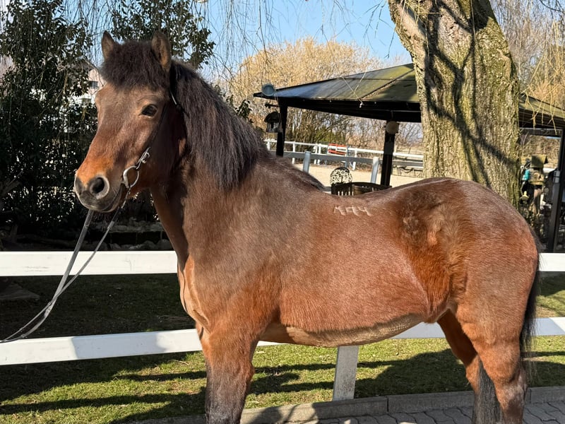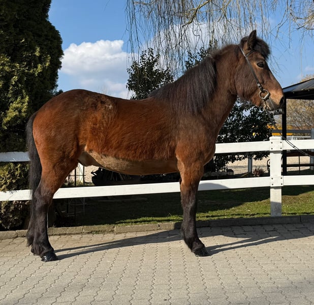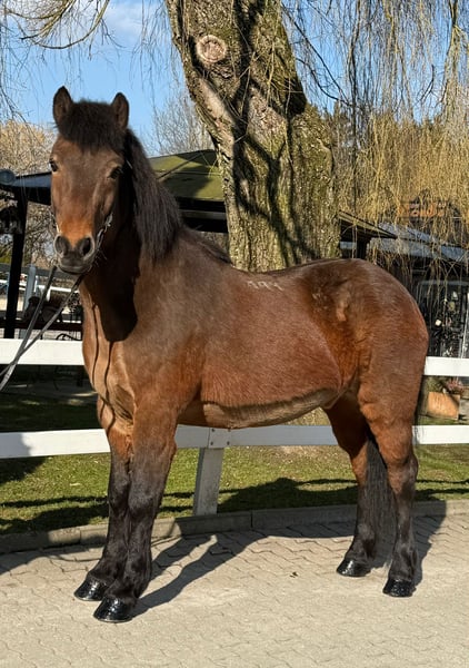 Óttar frá Miðhjáleigu Wallach, 144 cm *2012 in Island Viergänger Brauner Beschlagen und geimpft Zähne frisch gemacht V: Kjerúlf frá Kollaleiru 8,44 (Ext 8,14 Re 8,64)‼️ VV: Taktur frá Tjarnalandi 8,37 (Ext 8,16 Re 8,51)‼️ M: Ótta frá Þingnesi MV: Skírnir frá Skjólbrekku 8,11 (Ext 7,70 Re 8,51) ‼️ Zum Verkauf steht ein beeindruckender brauner Wallach mit großer, kräftiger und dennoch eleganter Statur. Óttar besticht vor allem durch sein außergewöhnliches Wesen: ein absoluter Ruhepol, den so schnell nichts aus der Fassung bringt. Er genießt jede Aufmerksamkeit beim Putzen und zeigt sich im täglichen Umgang stets freundlich, ausgeglichen und menschenbezogen – ein echtes Verlasspferd mit einem Charakter aus Gold. Unter dem Sattel überzeugt Óttar mit einem nahezu perfekten Temperament. Er ist weder übermotiviert noch triebig, sondern ein super verlässliches Pferd, das seinem Reiter mit viel Gelassenheit begegnet. Fehler verzeiht er großzügig und reagiert stets ruhig und besonnen, wodurch er besonders auch weniger erfahrenen Reitern ein gutes und stets sicheres Gefühl vermittelt. Seine Grundgangarten sind groß und ausdrucksstark, fast wie bei einem Großpferd. Besonders hervorzuheben ist sein taktklarer, flüssiger und sehr einfach zu reitender Tölt, der auch weniger geübten Töltreitern viel Freude bereitet. Óttar ist bestens ausgebildet und zeigt sich routiniert in der Halle, auf dem Platz, auf der Bahn sowie im Gelände. Durch seine hervorragende Gangverteilung und sein gefestigtes, freundliches Wesen ist er sowohl für ängstliche Reiter, Kinder und Jugendliche als auch für ambitionierte Freizeitreiter bestens geeignet. Auch wer sich auf Kursen weiterentwickeln oder erste Turnierluft schnuppern möchte, findet in ihm einen zuverlässigen und motivierten Partner. Er ist absolut herdentauglich und aktuell in einer Paddockbox zu zweit untergebracht. Ein Pferd zum Verlieben – für alle, die einen sicheren, ehrlichen und vielseitigen Partner suchen. Wer sich selbst von Óttar überzeugen lassen möchte, ihn kennenlernen und probieren will kann dies gerne nach Absprache in A-5221 Lochen am See tun.