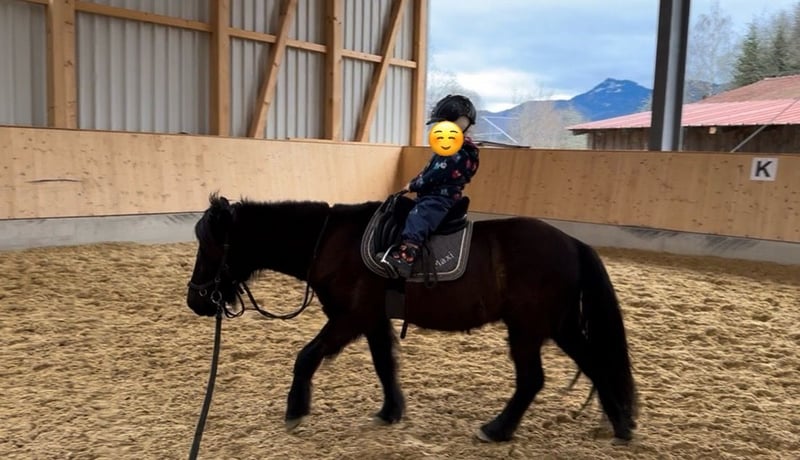 Vente poney islandais – partenaire idéal pour les loisirs ! Nous proposons à la vente un magnifique hongre islandais, né en 2010. Avec une taille au garrot de 1,30 m, il est parfaitement adapté aux enfants et séduit par son tempérament amical et sa nature agréable. Le hongre est en bonne santé, bien dressé et d’un caractère totalement fiable ! Lors du pansage, il reste calmement, ce qui permet même aux plus petits de le brosser et de le seller sans risque. Nous souhaitons offrir à notre Goofi un propriétaire stable. Son utilisation intensive en tant que poney d’école, avec des changements fréquents de cavaliers, commence à le stresser. Sous la responsabilité de ses cavaliers de confiance, il peut même se déplacer sans mors, uniquement avec un licol, dans toutes les allures de base. Il a toujours participé aux épreuves d’équitation de niveau, en dressage et en saut d’obstacles, ainsi qu’aux permis de conduire pour chevaux. Il se laisse facilement mener, même par de jeunes enfants, et est très courageux. Goofi est un islandais cinq-gaité, ce qui le rend très confortable à monter. Les côtés sont également faciles à exécuter avec lui. Les randonnées en solo ou en groupe, ainsi que les promenades en traîneau, lui procurent beaucoup de plaisir. Il s’intègre facilement dans un troupeau.
