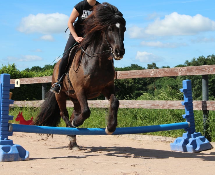 Omdat ik mijn paardenbestand wil verminderen en mijn Iberische paard wil houden, bied ik mijn IJslandse hengst "Ofeigur från Konga" te koop aan. Hij is geboren in 2009, 1,44 m hoog, stevig gebouwd (normaal gewicht 400 kg!) en heeft een gemiddeld temperament. Hij is zeer veelzijdig opgeleid en wordt viergang gereden (pass wordt niet actief getraind, maar is aanwezig). Waar is hij geschikt voor: - Absolute buitenrit- en trekpaard - Houdt van rally’s, trail- en vaardigheidsritten, Horse Agility en handpaardrijden - Is enthousiast over klassieke handwerkvaardigheden (zijgangen, verzameling, galopwerk aan de hand) - Houdt van clickertraining en kent veel circuslektionen (o.a. zitten, liggen, opstijgen, Spaanse pas, knielen) - Doet braaf dressuurwerk en longeerwerk, hoewel dat niet zijn favoriete bezigheid is, ook al kan hij als vijfgangpferd een volte galopperen ;-) Wat je nog meer met hem kunt doen: - Wordt regelmatig door jonge kinderen (3-5 jaar) "gereden" (loopt als handpaard mee) - Heeft al enkele IPZV-diplomaklassen doorlopen (FRAZ brons en zilver, enz.) - Is altijd de rots in de branding (verkeersveilig, heeft geen probleem met andere dieren zoals koeien/sheep, enz., laat zich niet van de wijs brengen door "spinnende" paardenbegeleiding) - Heeft deelgenomen aan Hestadagar onder andere in de viergang, tölt en bij Isi-Trec - Rijdt probleemloos met een trailer, vooral om nieuwe terreinen te verkennen - Heeft in de winter meerdere keren voor een slee gelopen Hij is eczeemvrij, loopt naakt (is nooit geschoeid, draagt eventueel hoefbeschermers of kleeft bij trektochten) en wordt meestal bitloos bereden. Bij de dierenarts is hij braaf en wordt al jaren alleen voor inentingen verzorgd. Zijn tanden worden jaarlijks verzorgd vanwege een (geen probleem) onderbissel. Hij staat momenteel in een kleine hengstengroep met tijdgestuurde voedering. Hij heeft ook in gemengde groepen gestaan. Weidegang is mogelijk, maar hij is van nature lichtfuttrig, daarom raad ik af om hem 24/7 op een "koeienweide" en met "suikerhooi" te laten grazen. Verder heeft hij geen speciale voederbehoeften. In de kudde heeft hij een middelhoge rang. Ik wens voor hem een familie of een ambitieuze recreant die veel met hem het terrein in gaat en zijn betrouwbare aard weet te waarderen. Ik kan me hem ook voorstellen voor de rijschool (voor buitenritten / gevorderde ruiters, enz.); niet als puur beginnerspaard op de piste, omdat hij waarschijnlijk niet zomaar zal weglopen. Hij kent het dagelijks leven met (kleine) kinderen en heeft al een jonge ruiter gehad, maar door zijn zelfstandigheid is hij geen puur kinderpony! Accessoires kunnen erbij worden gekocht. Meer foto's zijn ook te zien in mijn advertentie op Kleinanzeigen: [https://www.kleinanzeigen.de/s-anzeige/islaender-wallach-fuenfgaenger-rappe-islandpferd-toelt/3221831350-139-8364](https://www.kleinanzeigen.de/s-anzeige/islaender-wallach-fuenfgaenger-rappe-islandpferd-toelt/3221831350-139-8364)